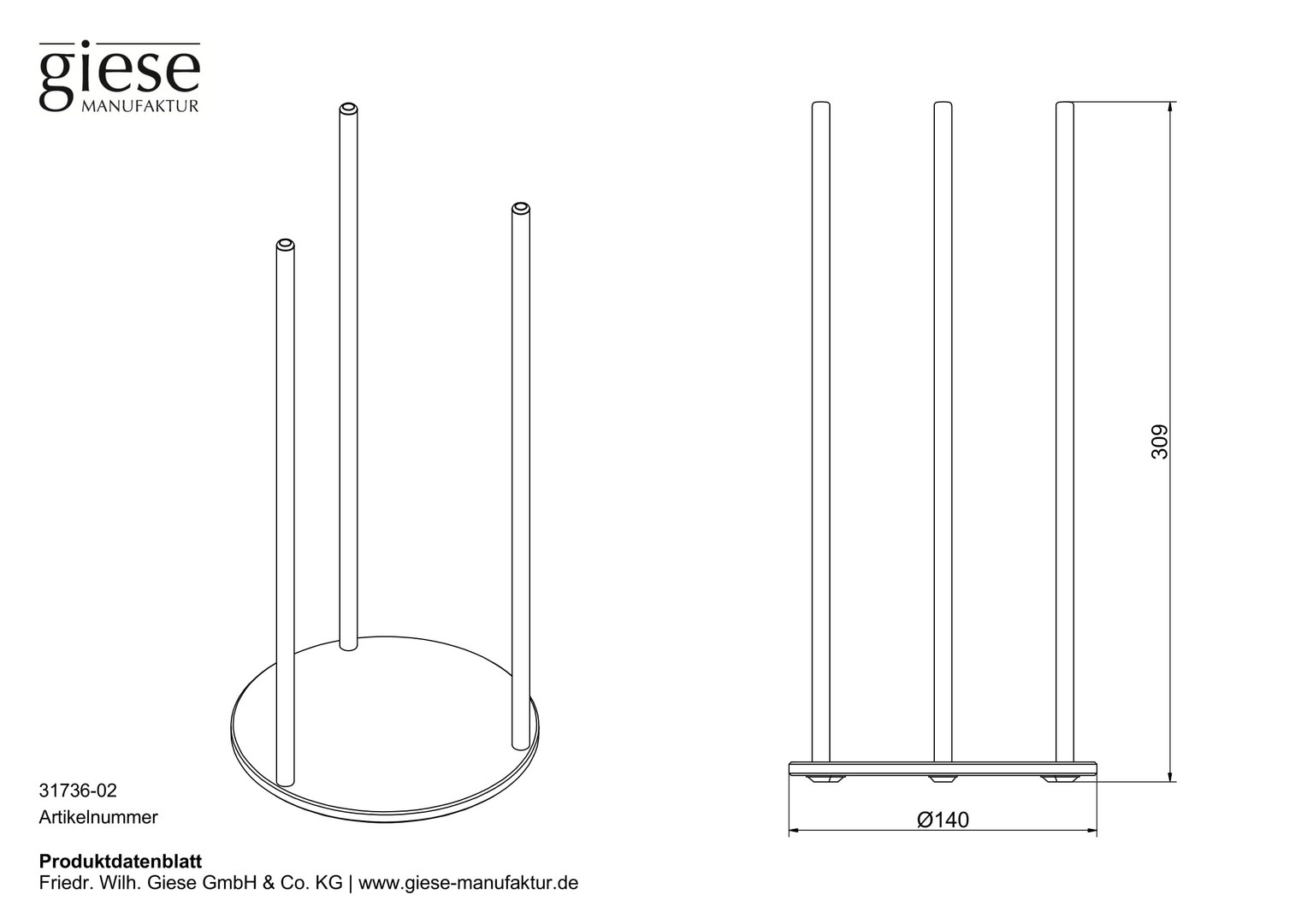 Giese Ersatzrollenhalter für drei Rollen, Standmodell, 140x309mm, verchromt W359531