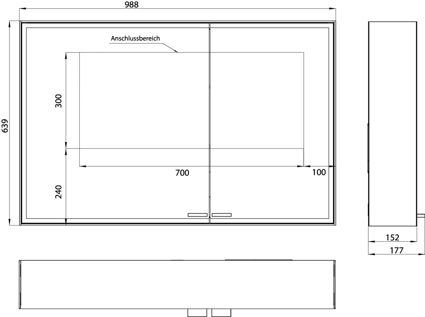 IP44, mit lightsystem: Bedienung der Funktionen Ein/Aus, Lichtstärke, Lichtfarbe (2.700 bis 6.500 K) und Szenenauswahl (Cosmetic, Energizing, Relaxing) über App, Controller oder direkt am Touch-Bedienfeld, Vernetzung verschiedener Lichtquellen über Bluetooth, ohne lightsystem: stufenlose Lichtsteuerung An/Aus, Helligkeit und Lichtfarbe (2.700 bis 6.500 K) über 3 integrierte Touchbedienfelder, umlaufende LED-Beleuchtung, verspiegelte Rückwand, verspiegelte Seitenwände, 2 stufenlos einstellbare Glasablagen, 2 Steckdosen