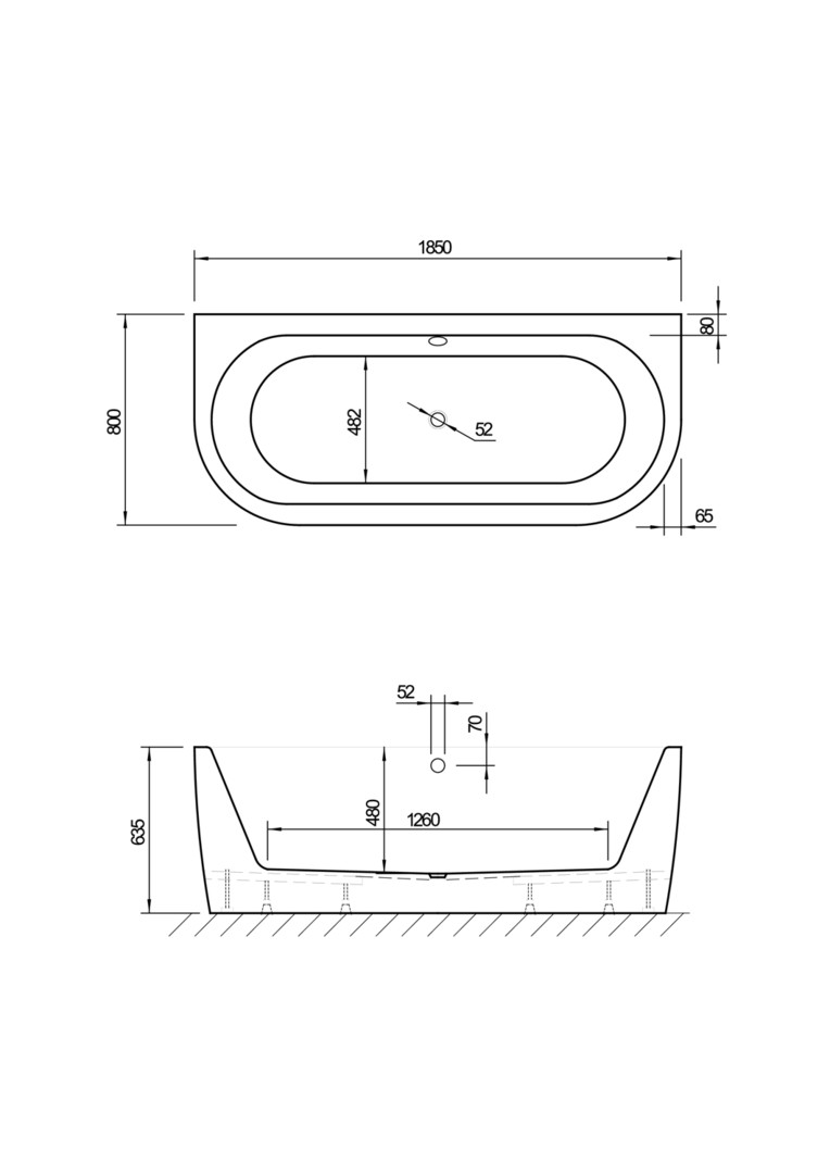 Koralle Badewanne T700 BW 185x80cm, wandstehend, oval, weiß
