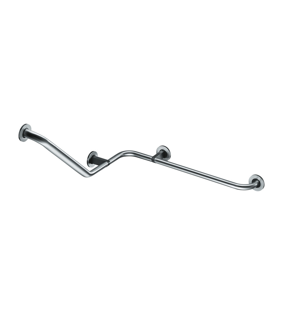 Kombination 90° mit 135° Winkelgriff, für Dusch- und Wannen-Bereich, Handgreifform elliptisch durch Ovalrohr 36,5 x 22 mm mit 45°-Schrägstellung, Befestigung verdeckt durch Abdeckblenden aus Edelstahl, Wandhalterungen aus Zinkdruckguss, schwarzgrau (RAL 7021), Ø 70 mm, mit Befestigungsmaterial