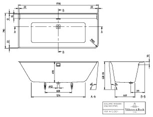 V&B Rechteck-Badewanne VN Collaro 179x79x62cm, Vorwand, Acryl, weiß W214097