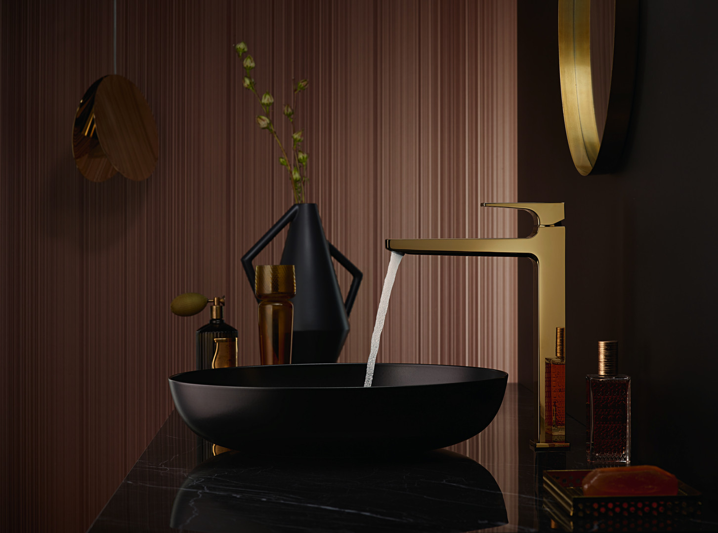 hansgrohe Waschtisch-Einhebelmischer 260 Metropol mit Hebelgriff, Push-Open-Ablaufgarnitur, Ausladung 204mm, polished gold optic