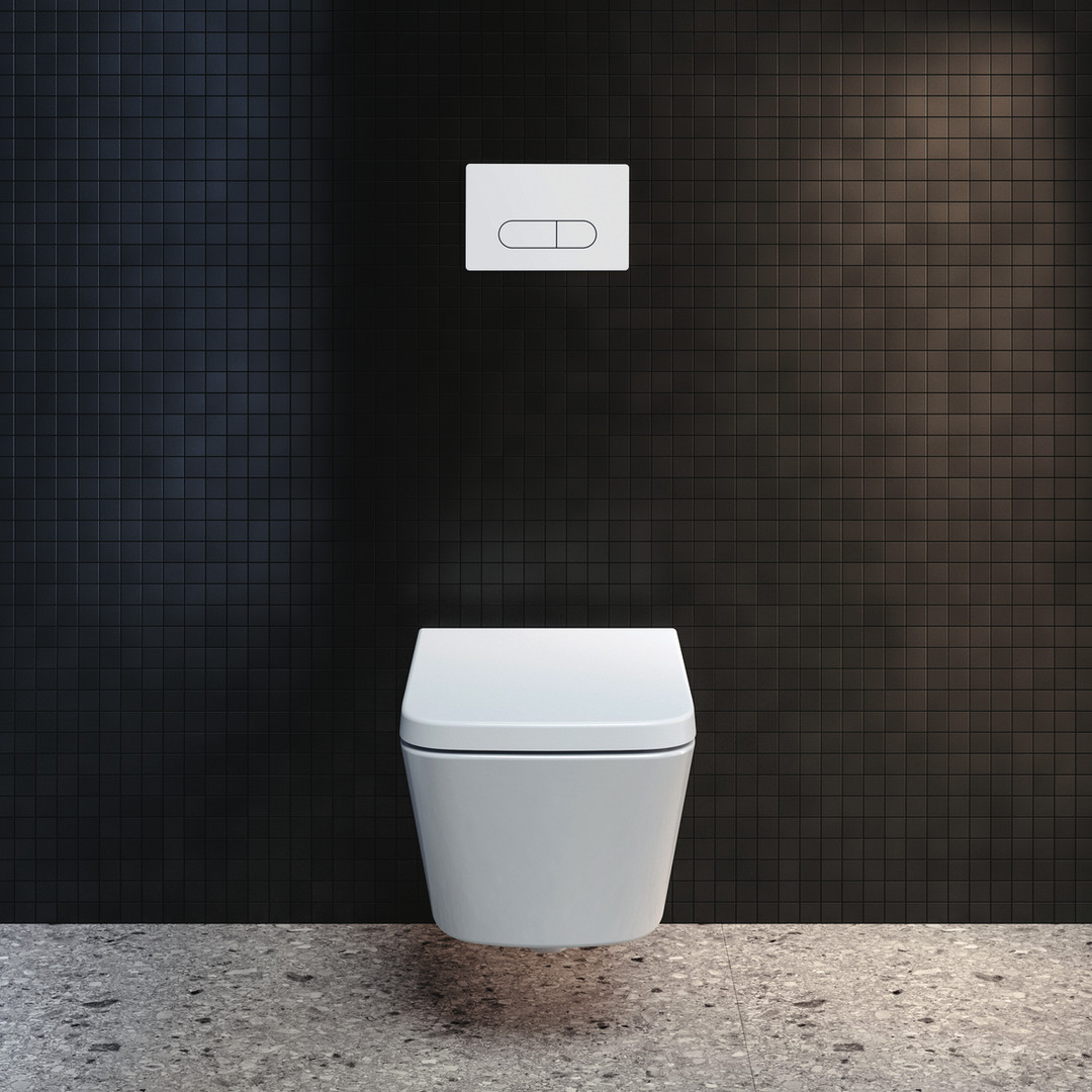 für 2-Mengen-Spültechnik, für ProSys WC-Spülkästen der Baureihen 150/120/80, zur Betätigung von vorn oder von oben, durchgefärbter ABS-Kunststoff mit federgelagerten Tasten, Betätigungskraft unter 20 N, mit Montagerahmen und Montagezubehör, Verbinder- und Betätigungsstangen für werkzeuglose Schnellverstellung vorbereitet