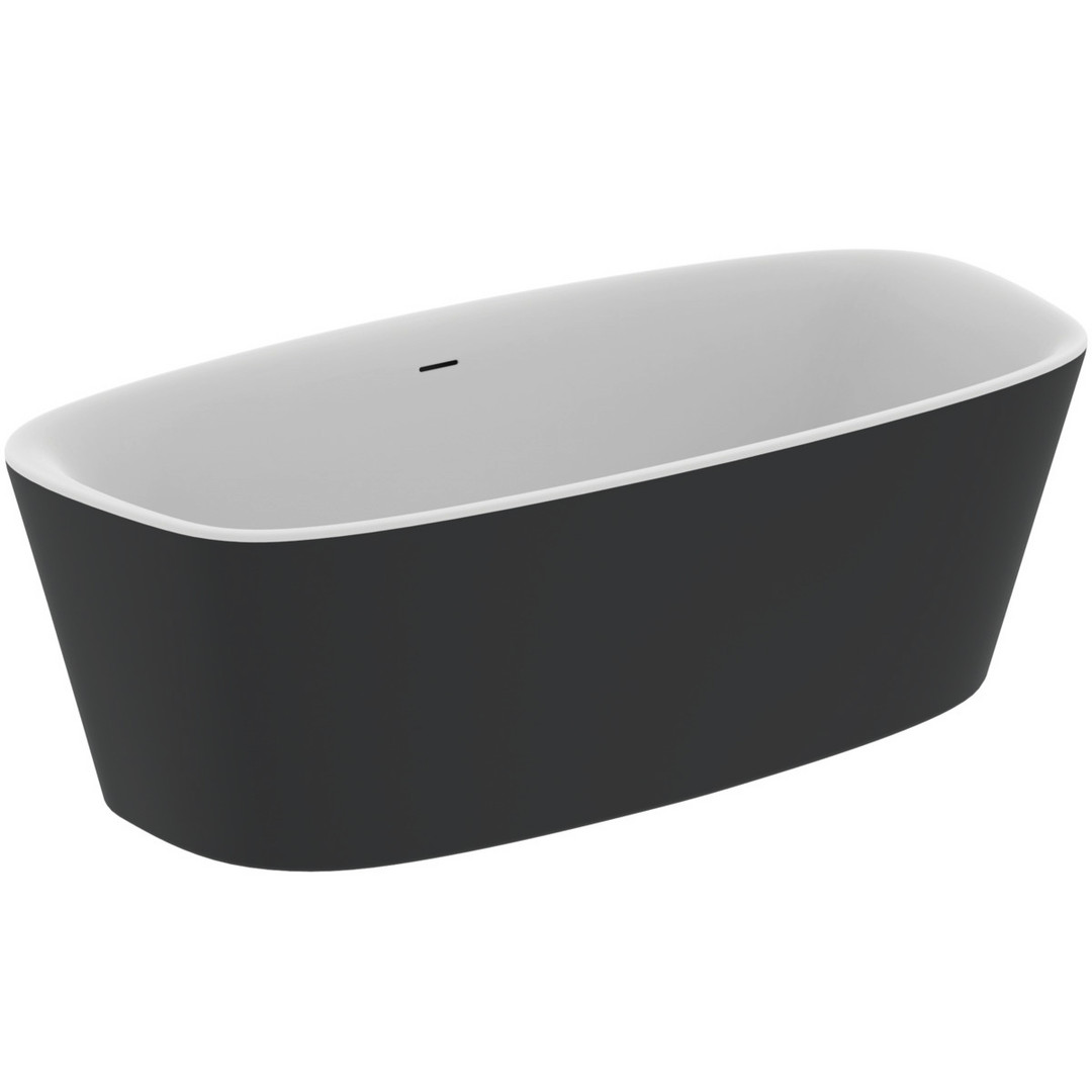 Ideal-Standard Freistehbadewanne Dea 190 x 90 x 61 cm, schwarz matt, Ab-/Überlaufgarnitur in chrom W208161