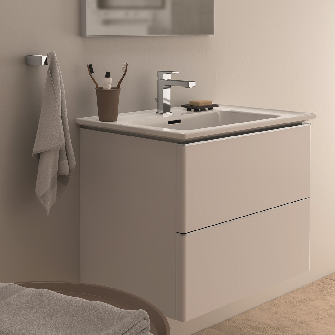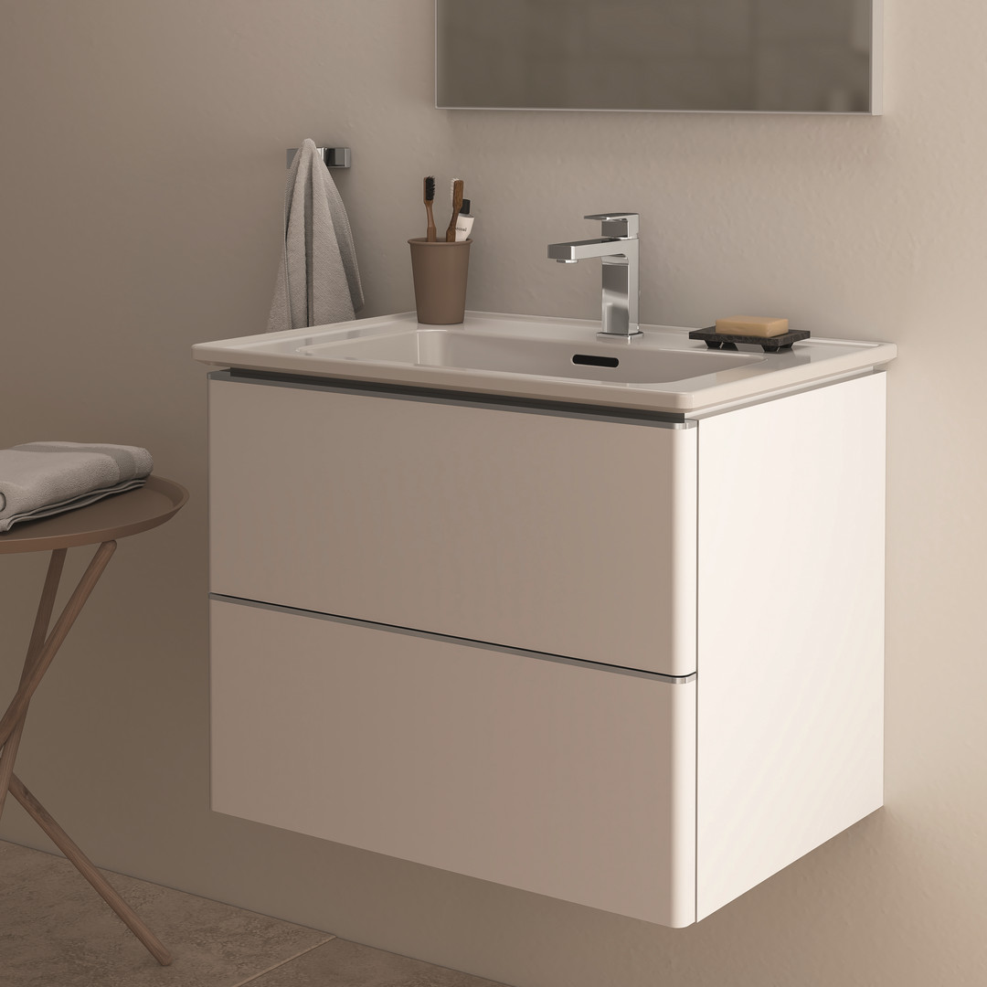 zur Kombination mit Möbelwaschtischen Strada II, Connect Air, Tonic II, Auszüge mit Push-Open-Auszugsmechanismus und Soft-Closing-Einzug (Blum Legrabox, Tipon Bluemotion), chrom Zierleiste, Korpus hochverdichtete Dreischicht-Holzspannplatte, Front MDF bei PA und PB, lackiert bei WG und Y2