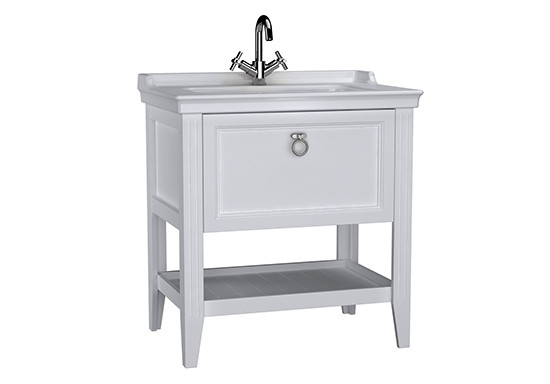 VitrA Bad Waschtisch-Möbel-Set Valarte 79,5 x 53 x 88 cm, 1 Vollauszug, Korpus elfenbein matt/Waschtisch weiß hochglanz W517316