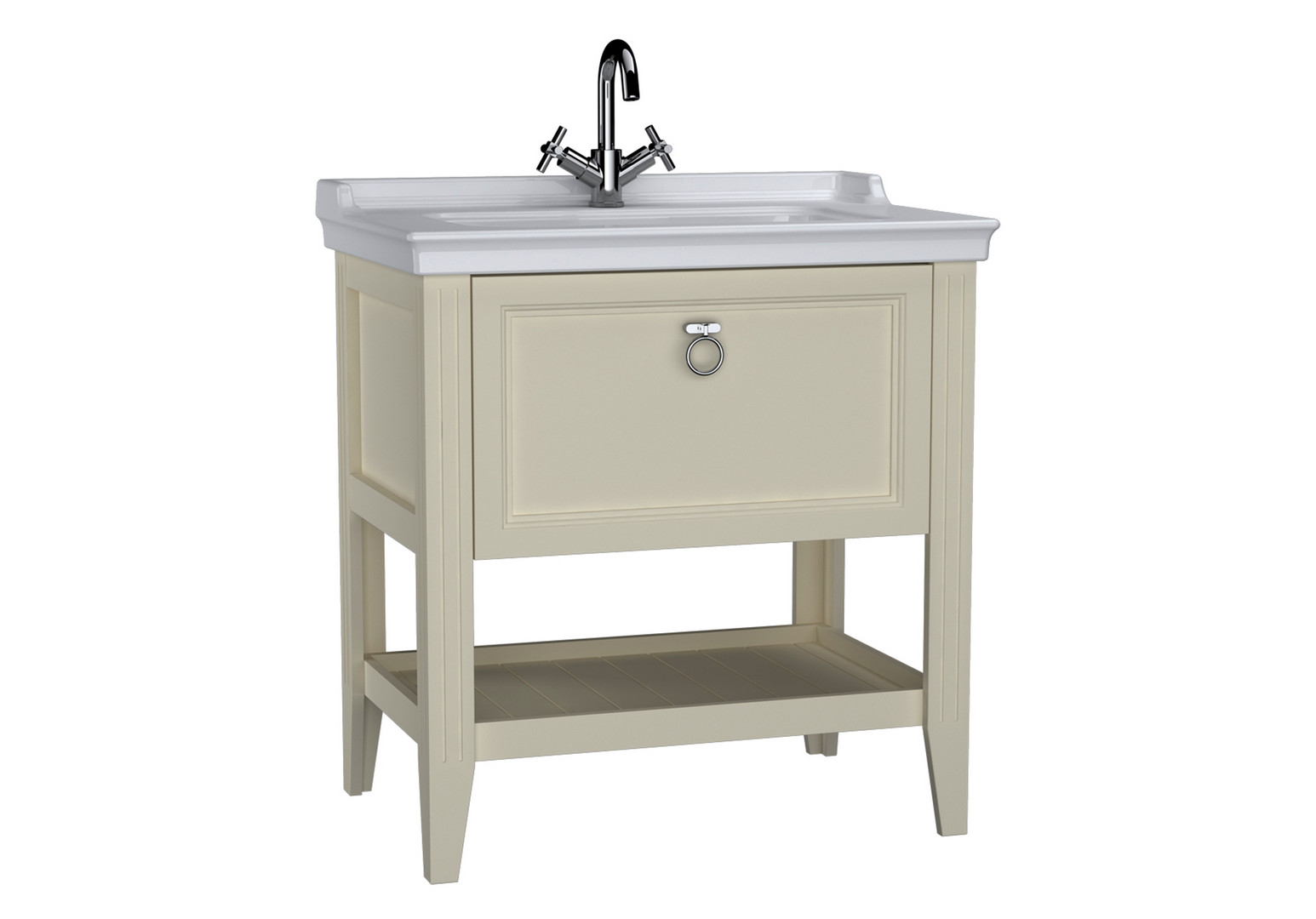 VitrA Bad Waschtisch-Möbel-Set Valarte 79,5 x 53 x 88 cm, 1 Vollauszug, Korpus elfenbein matt/Waschtisch weiß hochglanz W517316