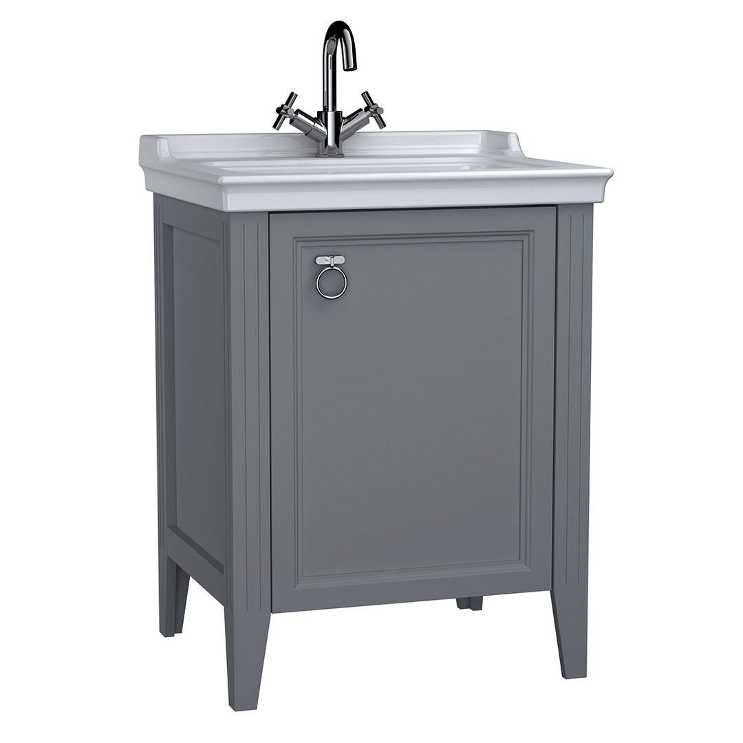 VitrA Bad Waschtisch-Möbel-Set Valarte 64,5 x 53 x 88 cm, rechts, Korpus grau matt/Waschtisch weiß hochglanz