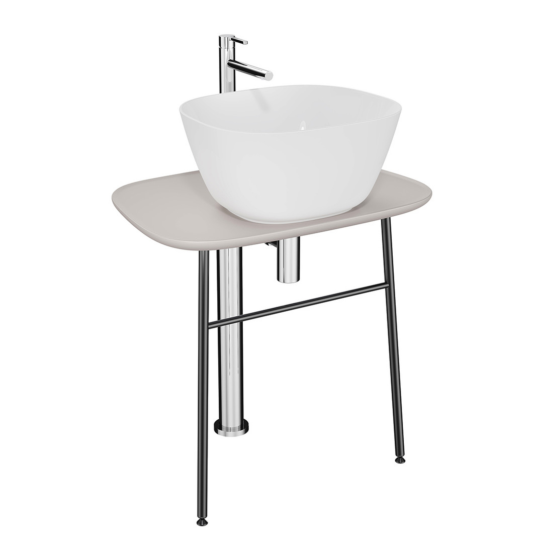 Metallrack schwarz matt lackiert, Konsolenplatte Sanitärkeramik, mit 1 Hahnloch hinten mittig, 1 Siphonausschnitt, passend zu Aufsatzschale 7811, Sanitärkeramik CERAFINE
