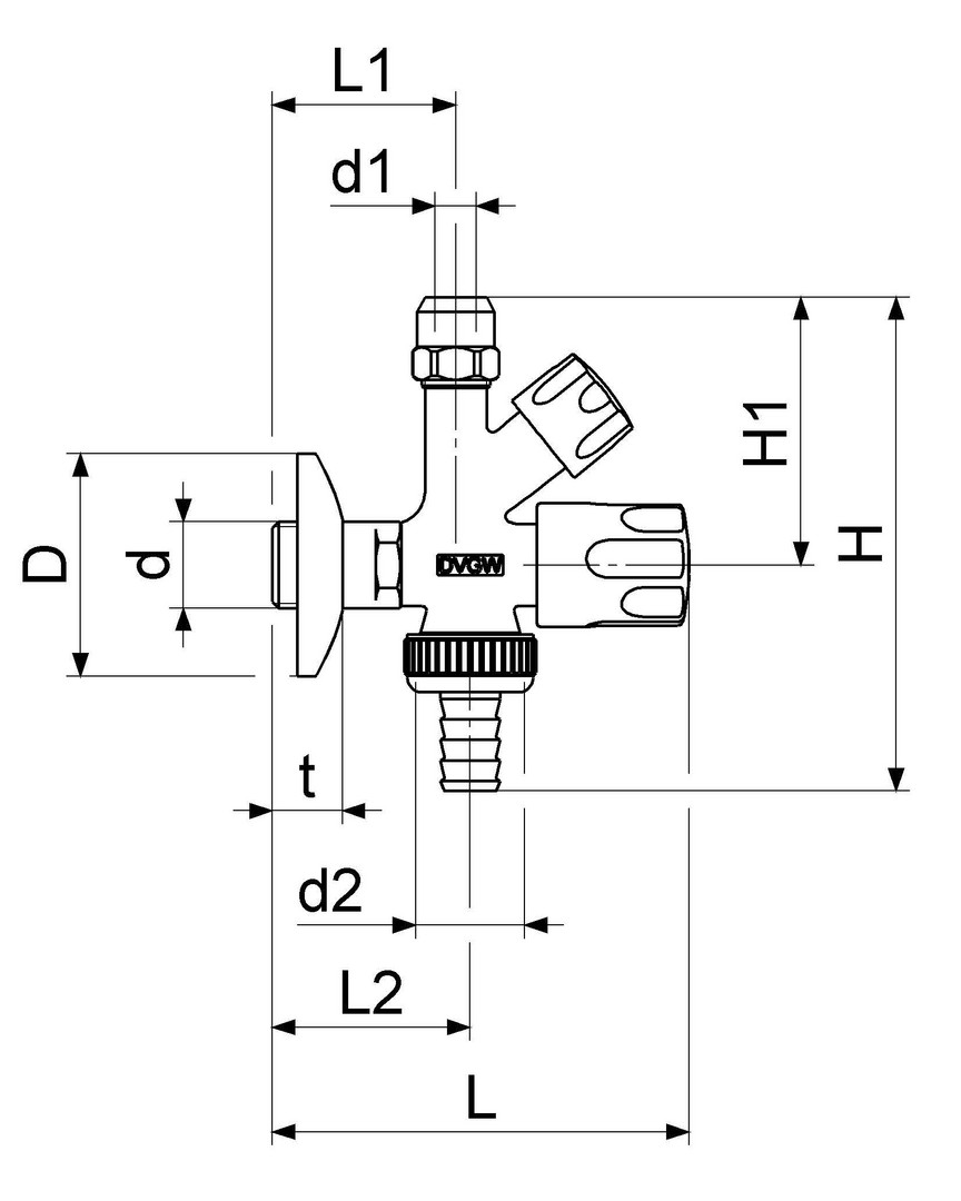 mit Rückflussverhinderer, Rosette und Schlauchverschraubung