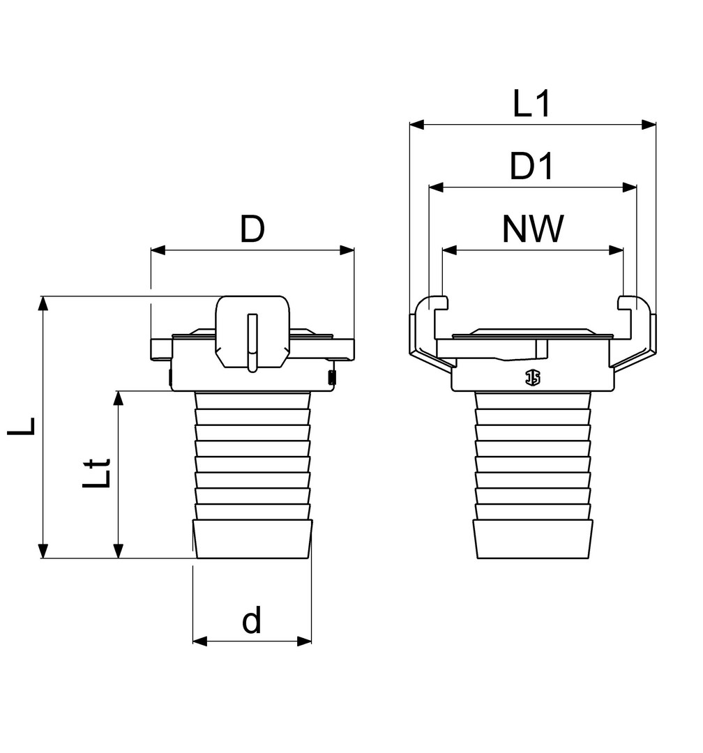 Schlösser Schnellkupplung 3307 DN 25, 1", DVGW, mit Tülle, Messing blank W537815