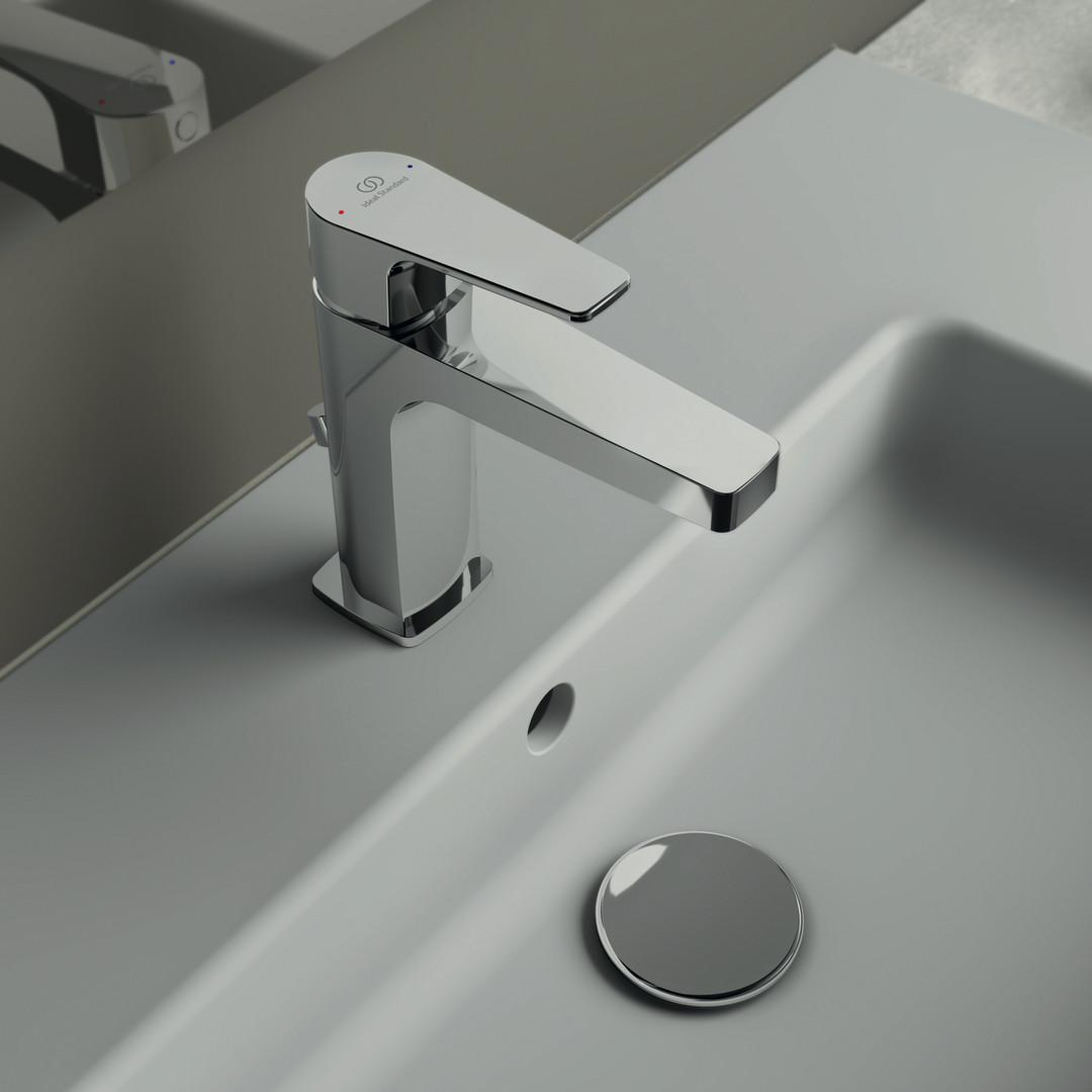 Ideal-Standard Waschtisch-Einhebelmischer Cerafine D Grande mit Metall-Ablaufgarnitur, BlueStart, chrom, Ausladung 120mm W318586