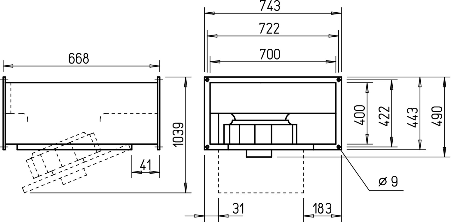 für Rechteck-Kanäle, Motor-Laufradeinheit ausschwenkbar, V= 540-14410 cbm, zur Förderung größerer Volumenströme in Ab- und Außenluftanlagen, unkritisch bei Förderung von verschmutzter Luft, Einbau in beliebiger Lage möglich-jedoch nur mit Revisionsklappe nach unten oder zur Seite, Gehäuse aus verzinktem Stahlblech und beidseitig mit Kanal-Flanschprofilen (20 mm) zum Einbau in Kanalverlauf, Schaufeln aus Kunststoff, drehzahlsteuerbarer EC-Außenläufermotor in Schutzart IP 44 (wartungs- und funkstörungsfrei, kugelgelagert), integrierte elektronische Temperaturüberwachung für EC-Motor und Elektronik, Klemmenkasten(IP 54) an ausgeführtem Kabel montiert