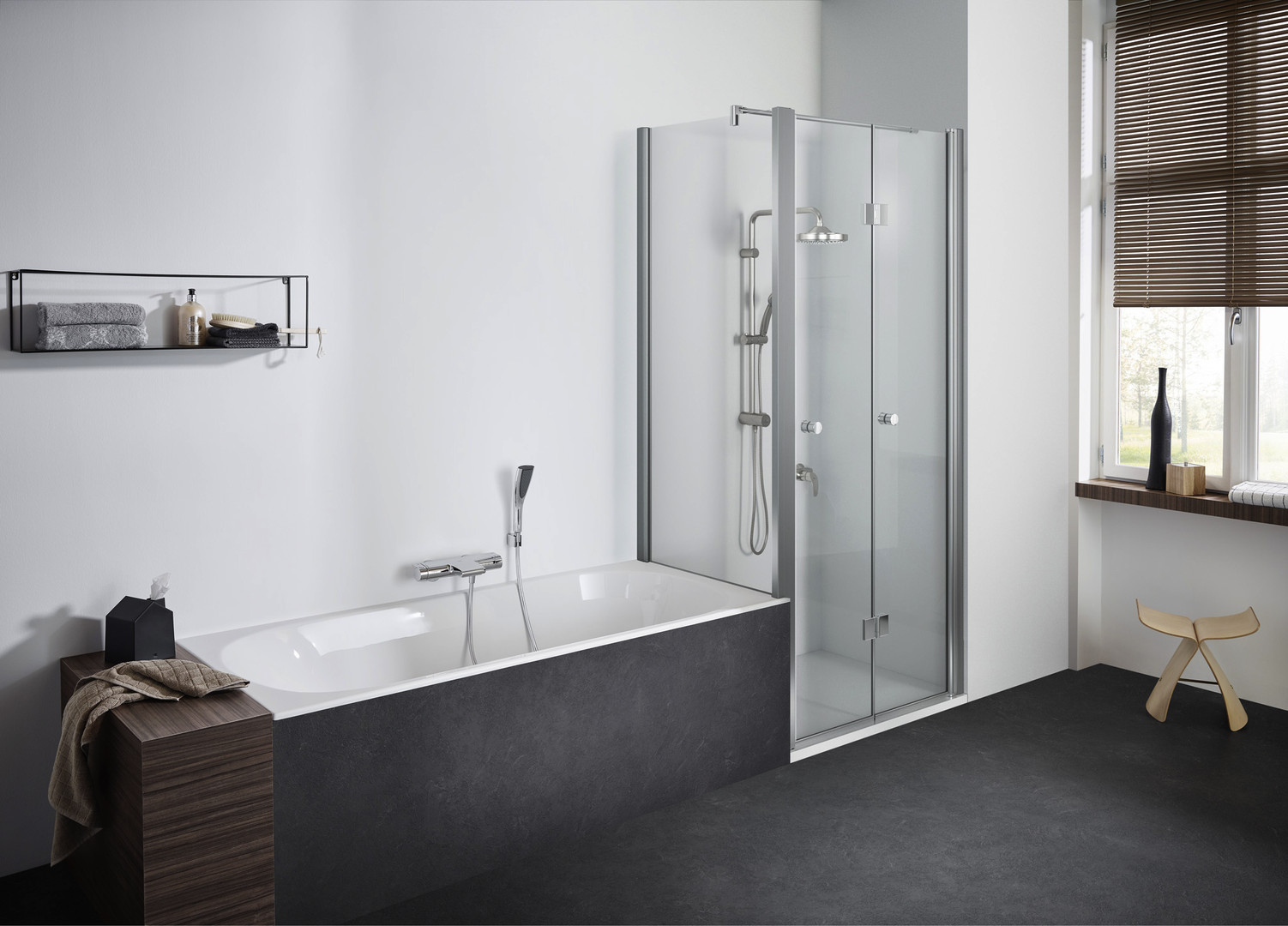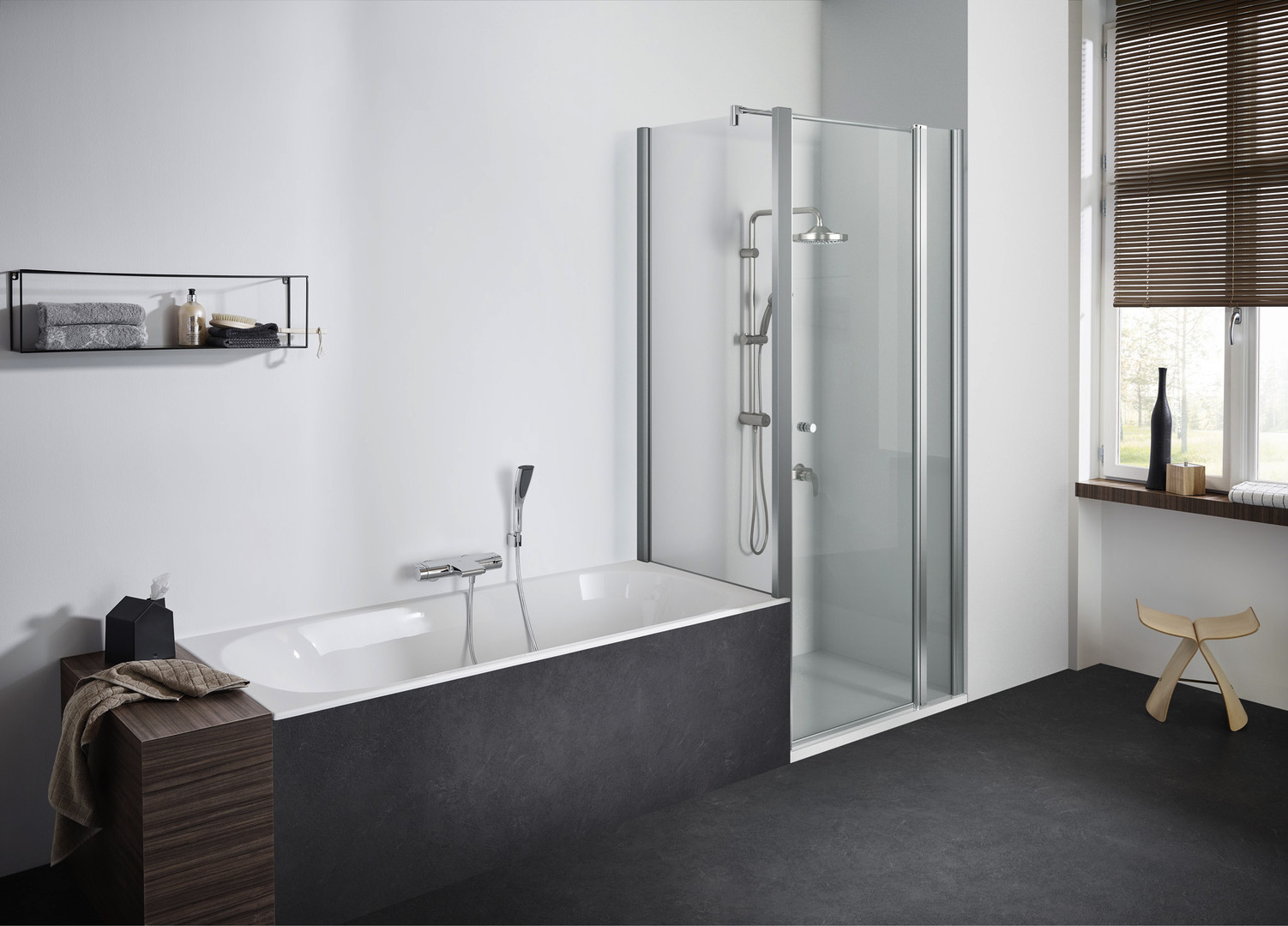 teilgerahmt, Profile aus Aluminium, mit Einscheibensicherheitsglas nach DIN EN 12150, für Wandanschlag links und rechts verwendbar, optional mit reinigungsfreundlicher GlasPlus-Beschichtung, geeignet für Montage auf Duschwanne, auf dem Boden und auf Badewanne, für die Einbausituationen in der Ecke und in der U-Kombination, Breitenverstellung an einer Seite, an der Wand mit Wandprofil befestigt, Wandprofil mit stufenloser Breitenverstellung und zum Ausgleich von Schrägen, Breitenfixierschrauben mit Abdeckkappen, Die Quertraverse ist vor Ort kürzbar, Möglich sind Sondermaß, Schrägzuschnitt, Ausschnitt, nicht alleinstehend montierbar, zu kombinieren mit TwiggyPlus TPW, TwiggyPlus TPWBO, TwiggyPlus TPF, TwiggyPlus TPFBO, TwiggyPlus TFT, TwiggyPlus TFTBO, TwiggyPlus TP2W, TwiggyPlus TP2WBO sowie als U-Kombination mit TwiggyPlus EPF, TwiggyPlus VPF, TwiggyPlus EPFBO, TwiggyPlus VPFBO, bestehend aus: eine Trennwand, ein Wandprofil, Quertraverse, Zubehör, Montageset, Produktdokumentation