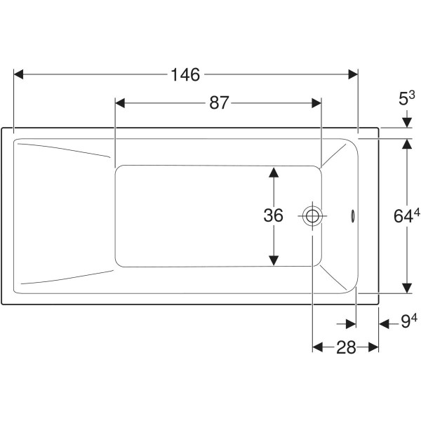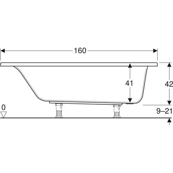 Geberit Badewanne Renova Plan 160 x 75 cm, Rechteck, Abgang am Fußende, weiß