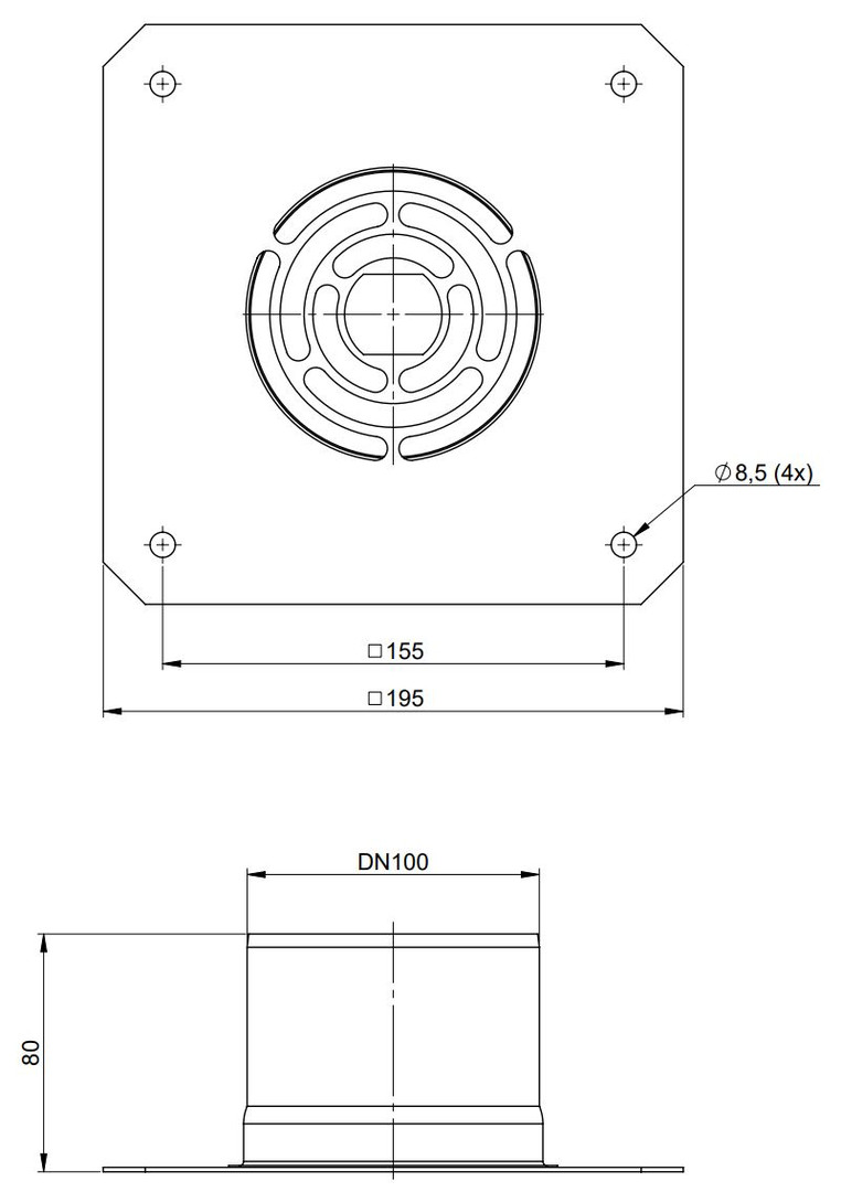 ATEC Verankerungsplatte PolyClassic +Iron/White DN 100/150, PP, Edelstahl blank W605077