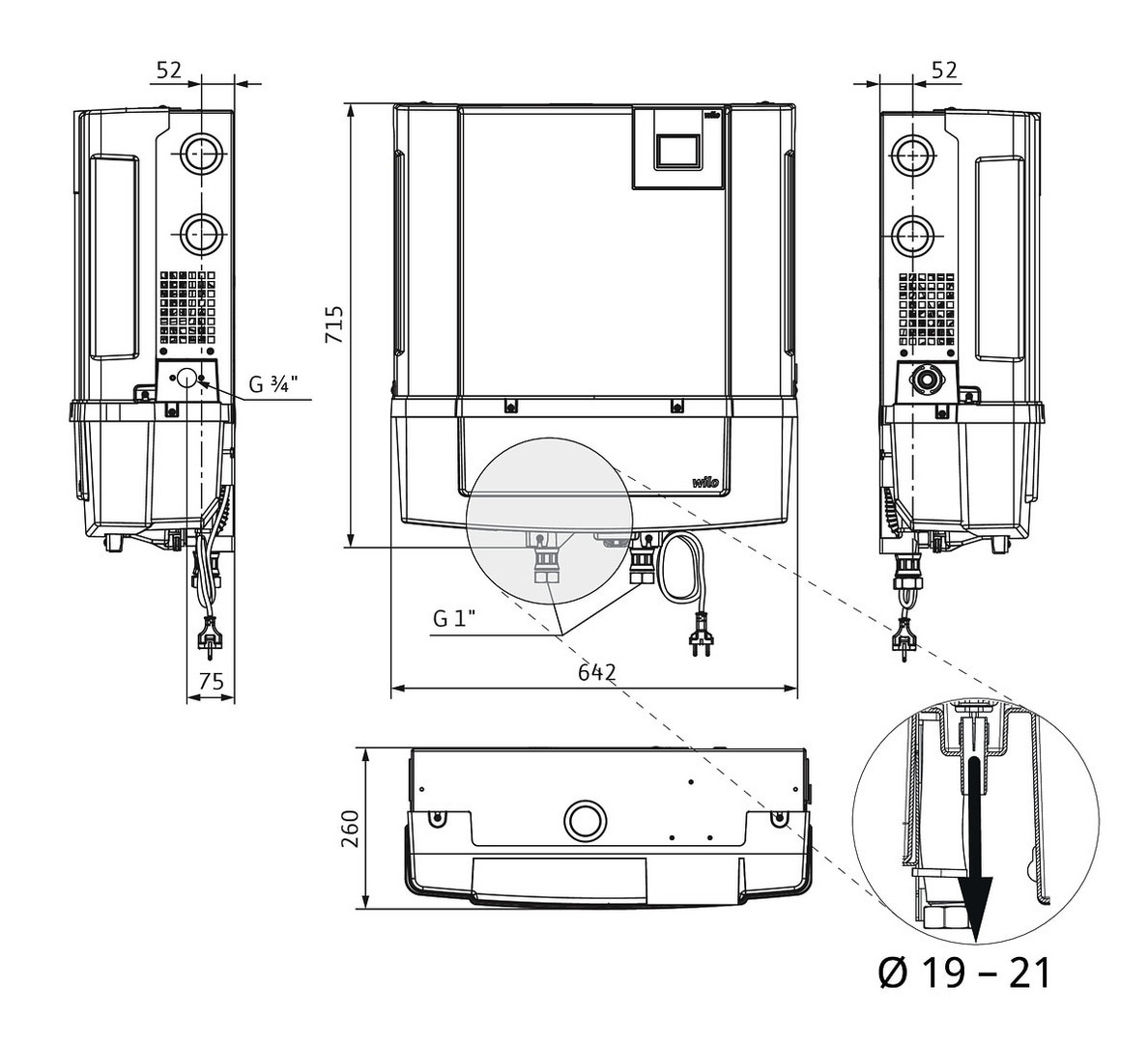 | Rohraußendurchmesser Anschluss Auslassseite | 25 mm |