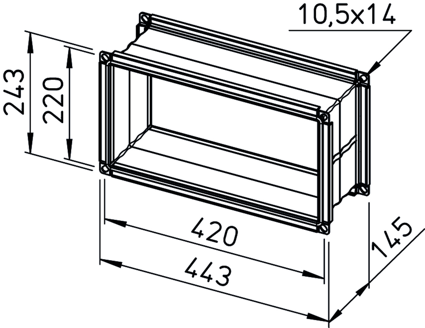 beidseitig mit Flanschanschlüssen, zur Montage zwischen Lüftungsgerät und Kanalsystem, unterbindet die Körperschallübertragung und überbrückt Montagetoleranzen, elastische Manschette aus Gewebetuch, Temperatureinsatzbereich: -10 Grad C bis +80 Grad C, Kanalmaß 300 x 150 mm, Gesamt-Einbaulänge 145 mm