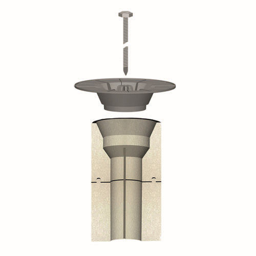 variables Balkonentwässerungssystem, bestehend aus Schalungspilz, Wärmedämmkörper und Befestigungsschrauben