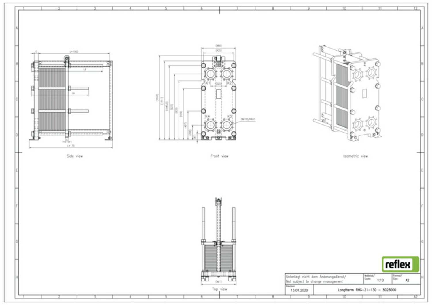 Reflex Wärmetauscher Longtherm RHG-21-130 Plattenzahl 130, geschraubt, Edelstahl