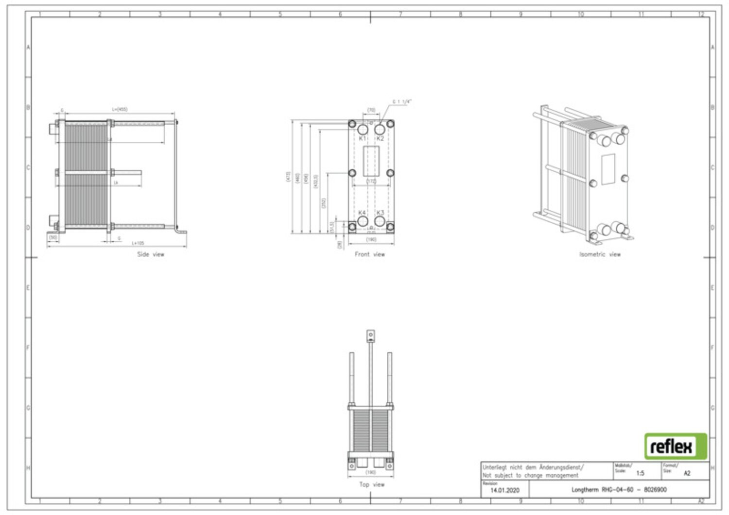 Reflex Wärmetauscher Longtherm RHG-04-60 Plattenzahl 60, geschraubt, Edelstahl