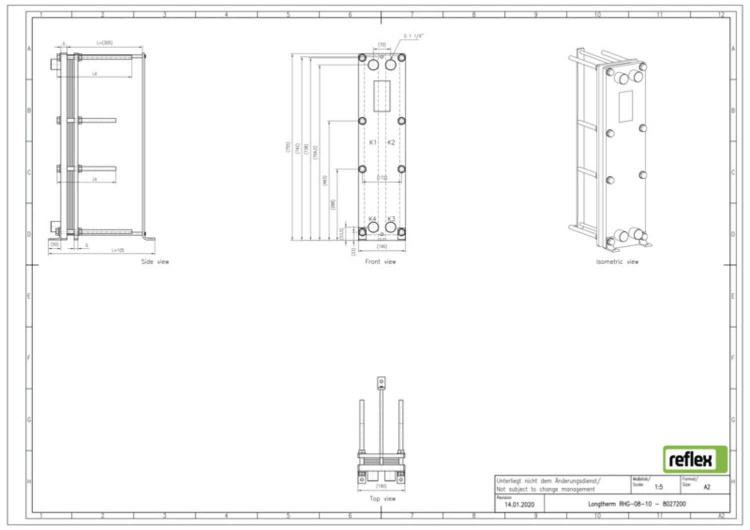 Reflex Wärmetauscher Longtherm RHG-08-10 Plattenzahl 10, geschraubt, Edelstahl