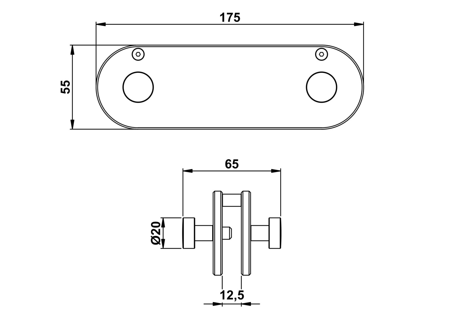 für Glaswand bis 12 mm, Kompaktschichtstoff (HPL) in weiß mit schwarzem Kern