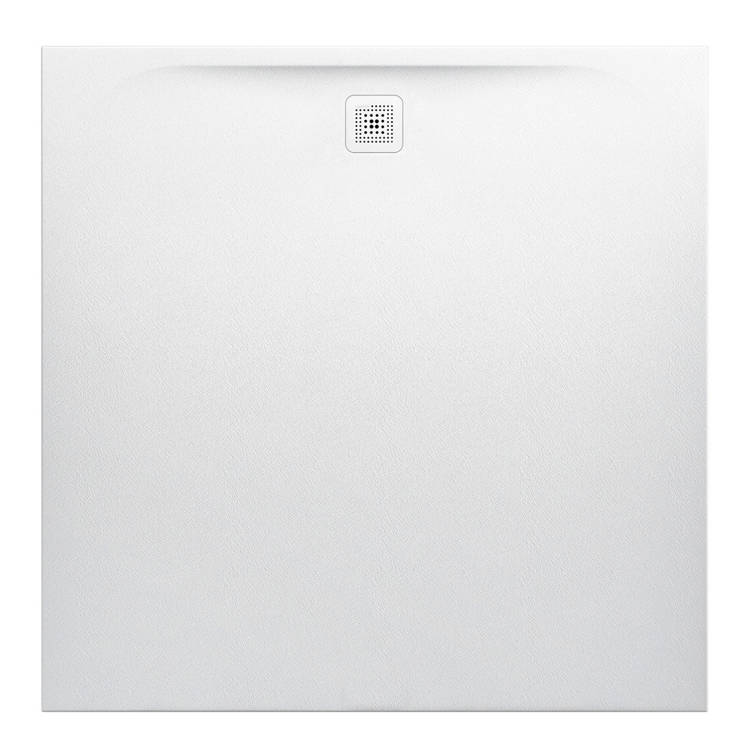 aus Marbond, Gel Coat Oberfläche, mit Oberflächenstruktur, matt, quadratisch, Ablauf seitlich, mit Ablaufabdeckung, die Ablaufabdeckung entspricht der Farbe der Wanne