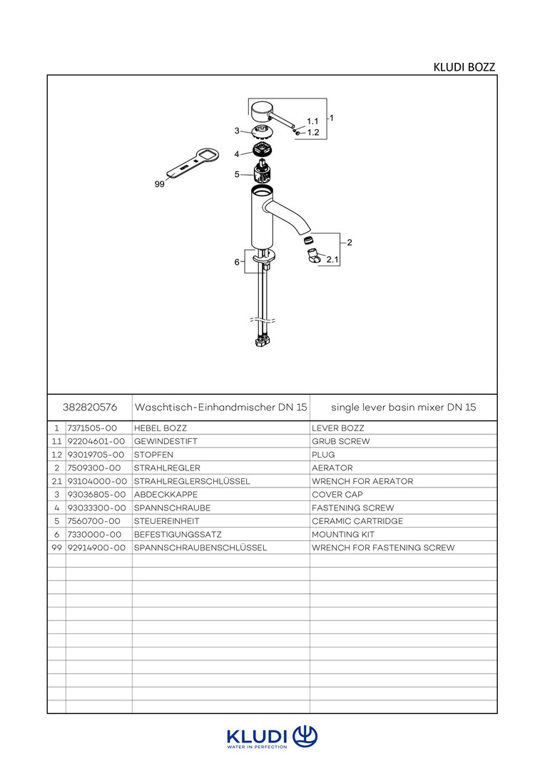 KLUDI BOZZ Waschtisch-Einhebelmischer 100 ohne Ablaufgarnitur, chrom W324922