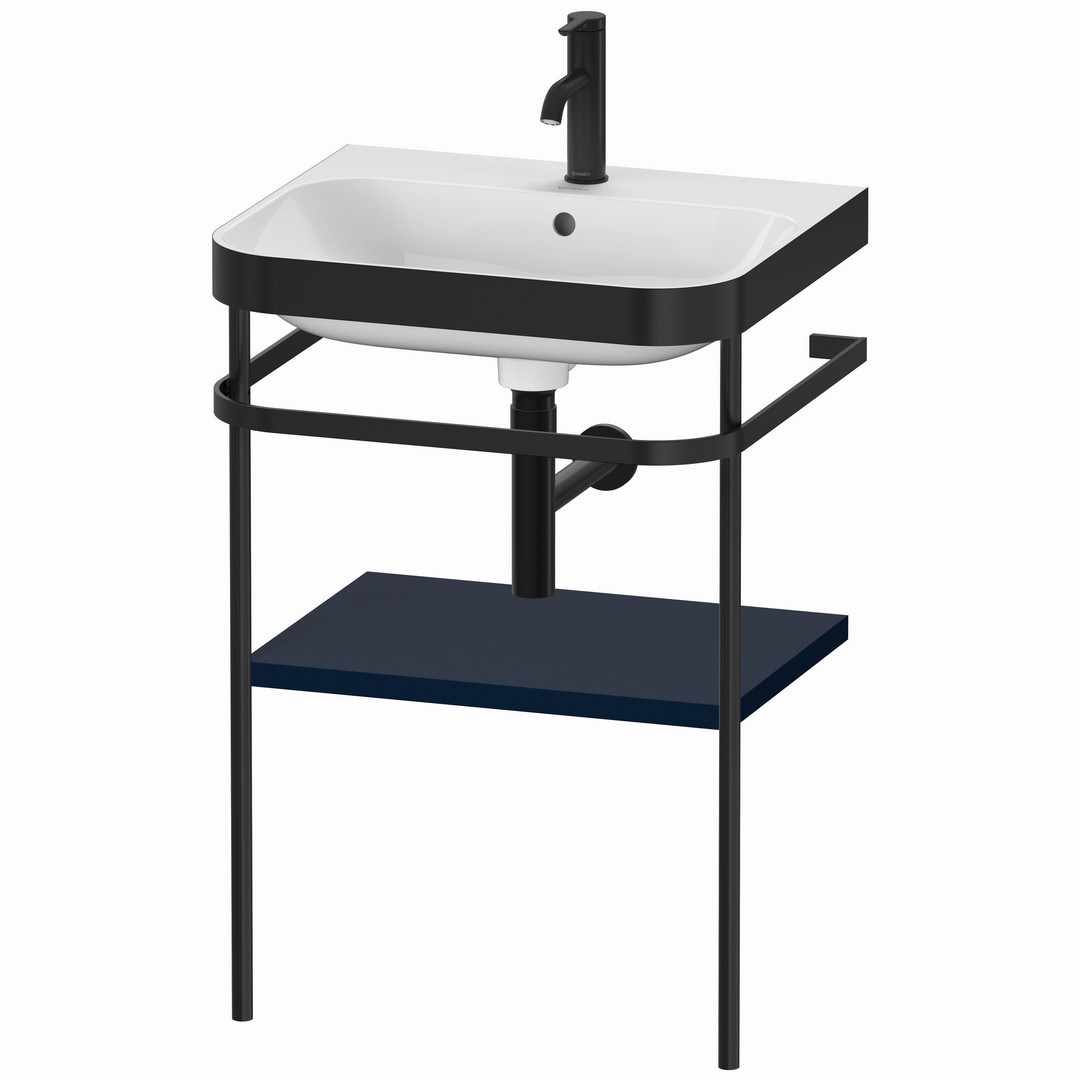 Duravit Möbelwaschtisch-Kombination Happy D.2 Plus 57,5 x 49 cm, 1 Hahnloch, nachtblau seidenmatt, mit Metallkonsole