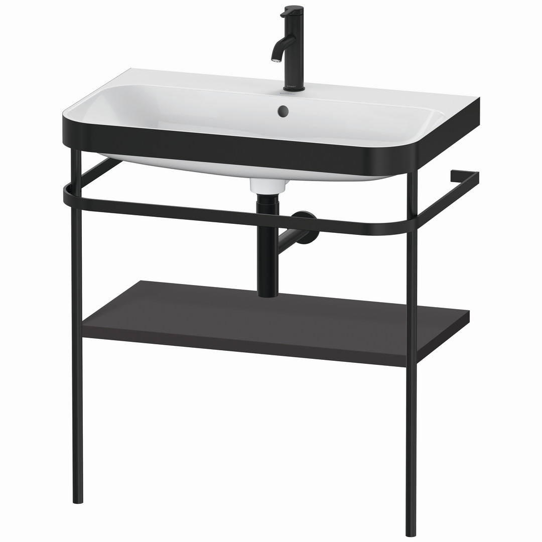 Duravit Möbelwaschtisch-Kombination Happy D.2 Plus 77,5 x 49 cm, 1 Hahnloch, graphit supermatt, mit Metallkonsole