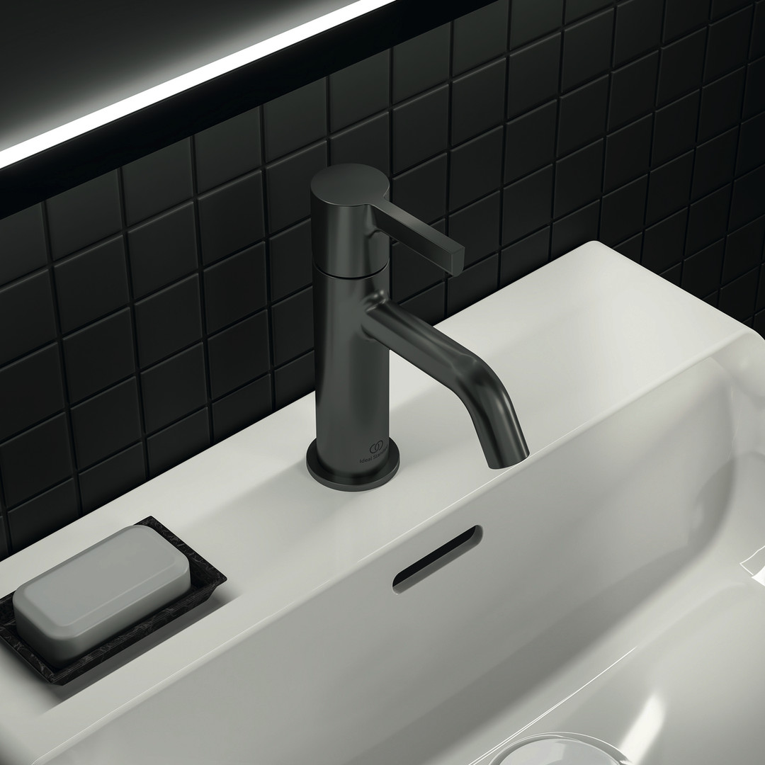 Ideal-Standard Waschtisch-Einhebelmischer Joy DN 15, Ausladung 110mm, mit Metall-Ablaufgarnitur, magnetic grey W318291