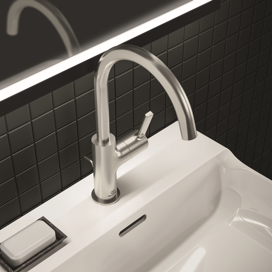 Ideal-Standard Waschtisch-Einhebelmischer Joy Ausladung 169mm, hoher Auslauf, schwenkbar, mit Metall-Ablaufgarnitur, silver storm