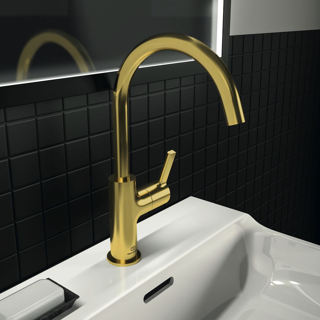 Ideal-Standard Waschtisch-Einhebelmischer Joy Ausladung 169mm, hoher Auslauf, schwenkbar, ohne Ablaufgarnitur, brushed gold