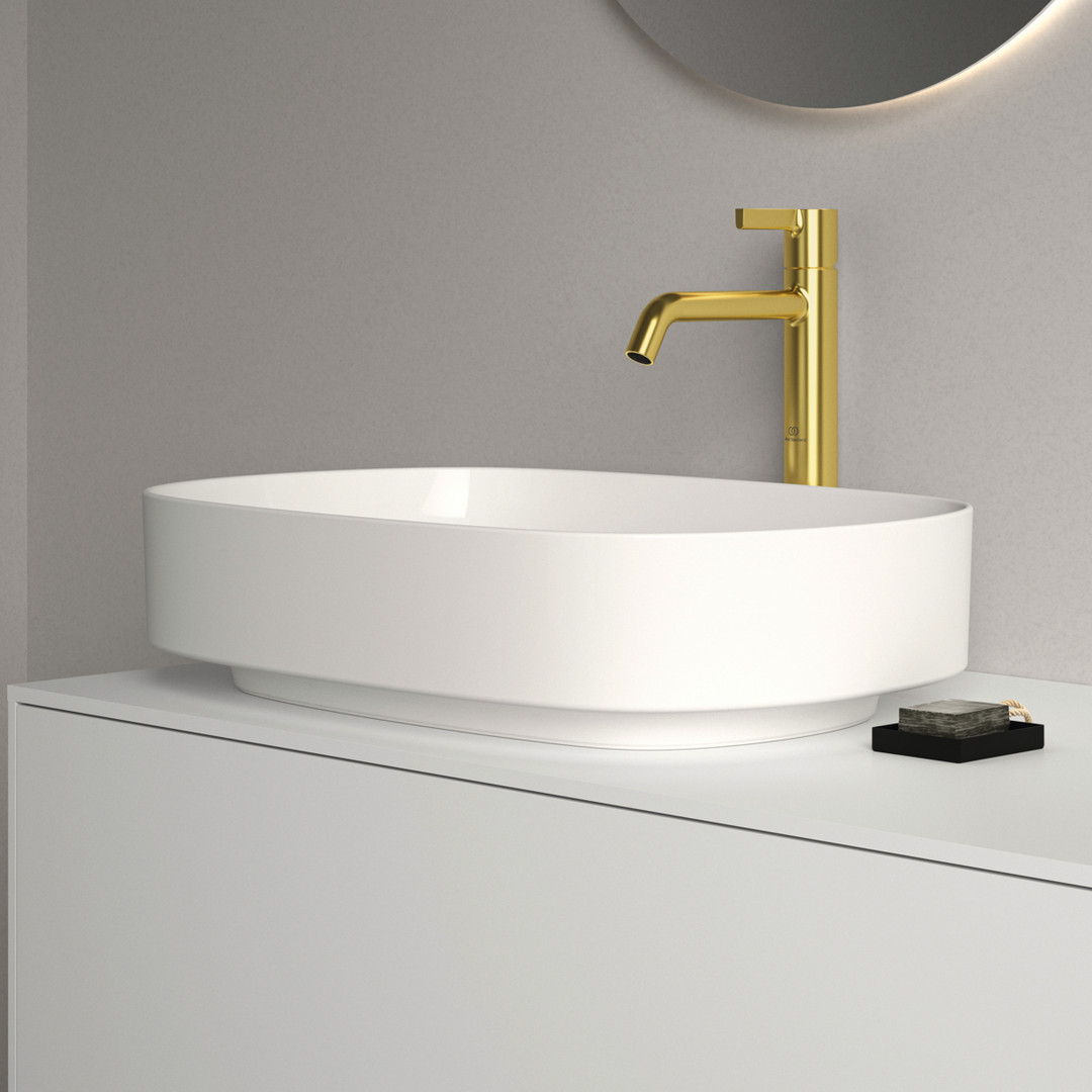 Ideal-Standard Waschtisch-Einhebelmischer Joy Ausladung 170mm, mit verlängertem Sockel, mit Metall-Ablaufgarnitur, brushed gold