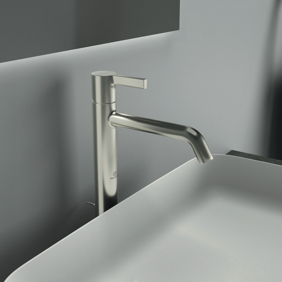 Ideal-Standard Waschtisch-Einhebelmischer Joy Ausladung 170mm, mit verlängertem Sockel, mit Metall-Ablaufgarnitur, silver storm