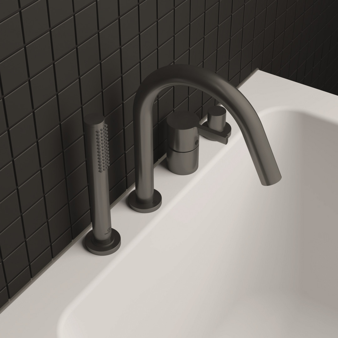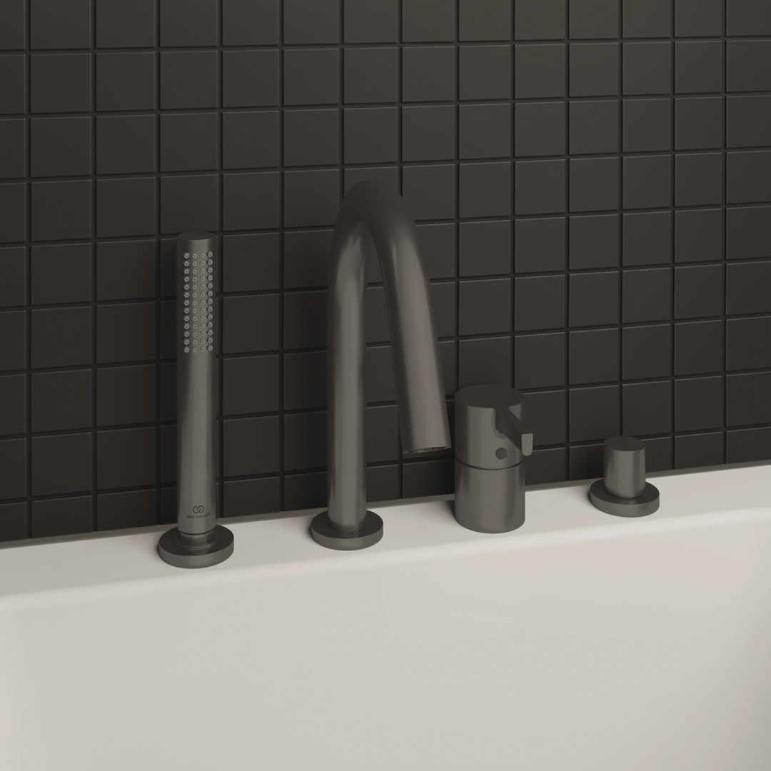 Ideal-Standard 4-Loch-Wannenarmatur Joy für Wannenrandmontage, mit Auslauf, Magnetic Grey W318339