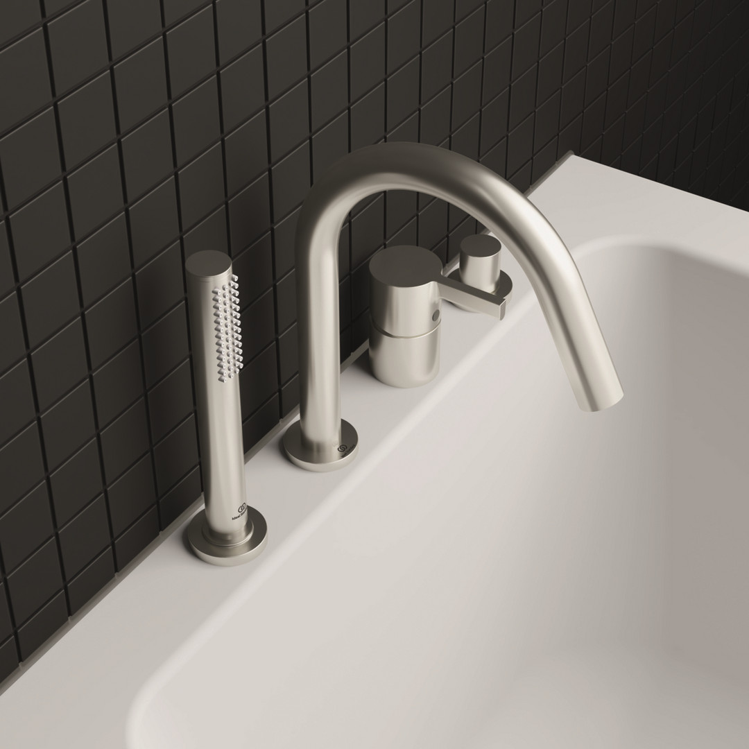 Ideal-Standard 4-Loch-Wannenarmatur Joy für Wannenrandmontage, mit Auslauf, Silver Storm