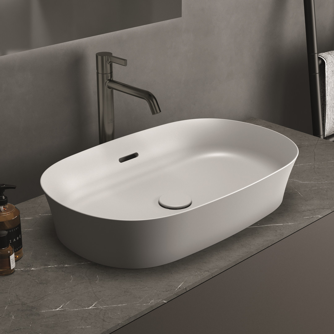 Ideal-Standard Aufsatzschale Ipalyss 60x38x14,5cm, mit Überlauf, ohne Hahnloch, seidenweiß W34616