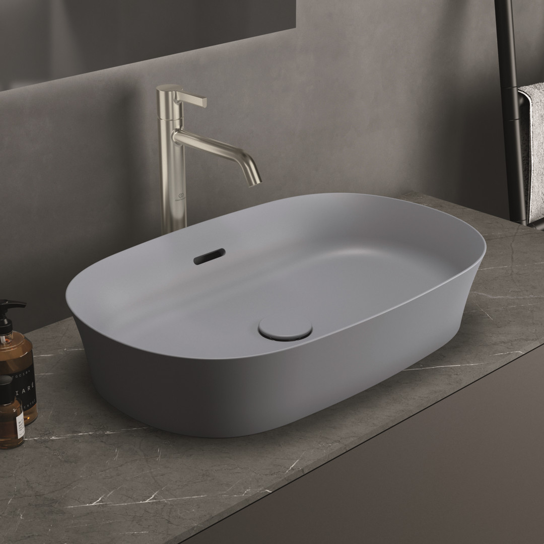 Ideal-Standard Aufsatzschale Ipalyss 60x38x14,5cm, mit Überlauf, ohne Hahnloch, puderblau