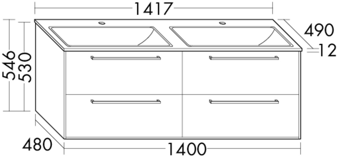 Burgbad Osera Waschtisch-Unterschrank-Set Weiß matt T2, 141,7x49x54,2cm, 2 Schubladen/2 Auszüge W392248