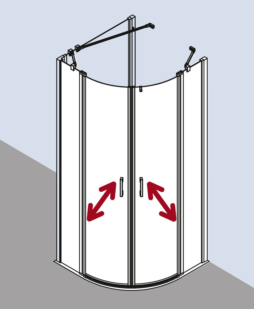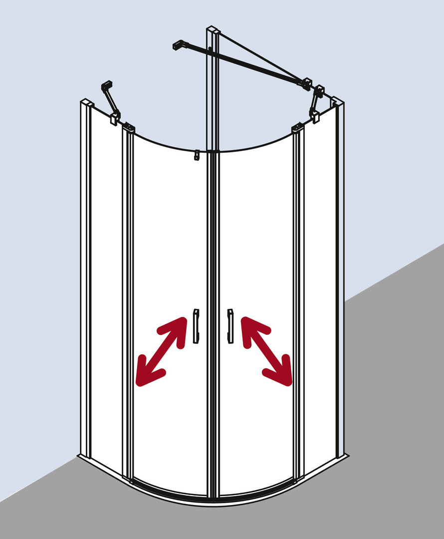 FORMAT Pro 2.0 VK-Pendeltür mit Festfeldern silber hochglanz, Radius 55 cm, 90 x 185 cm, ESG klar Clean W222250