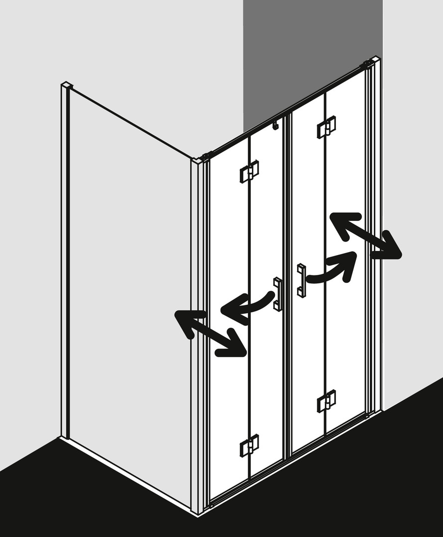 FORMAT Pro 2.0 Pendel-Falttür 4-tlg. silber hochglanz, Maßanfertigung, Wanneneinbaumaß bis 125 cm, ESG klar Clean