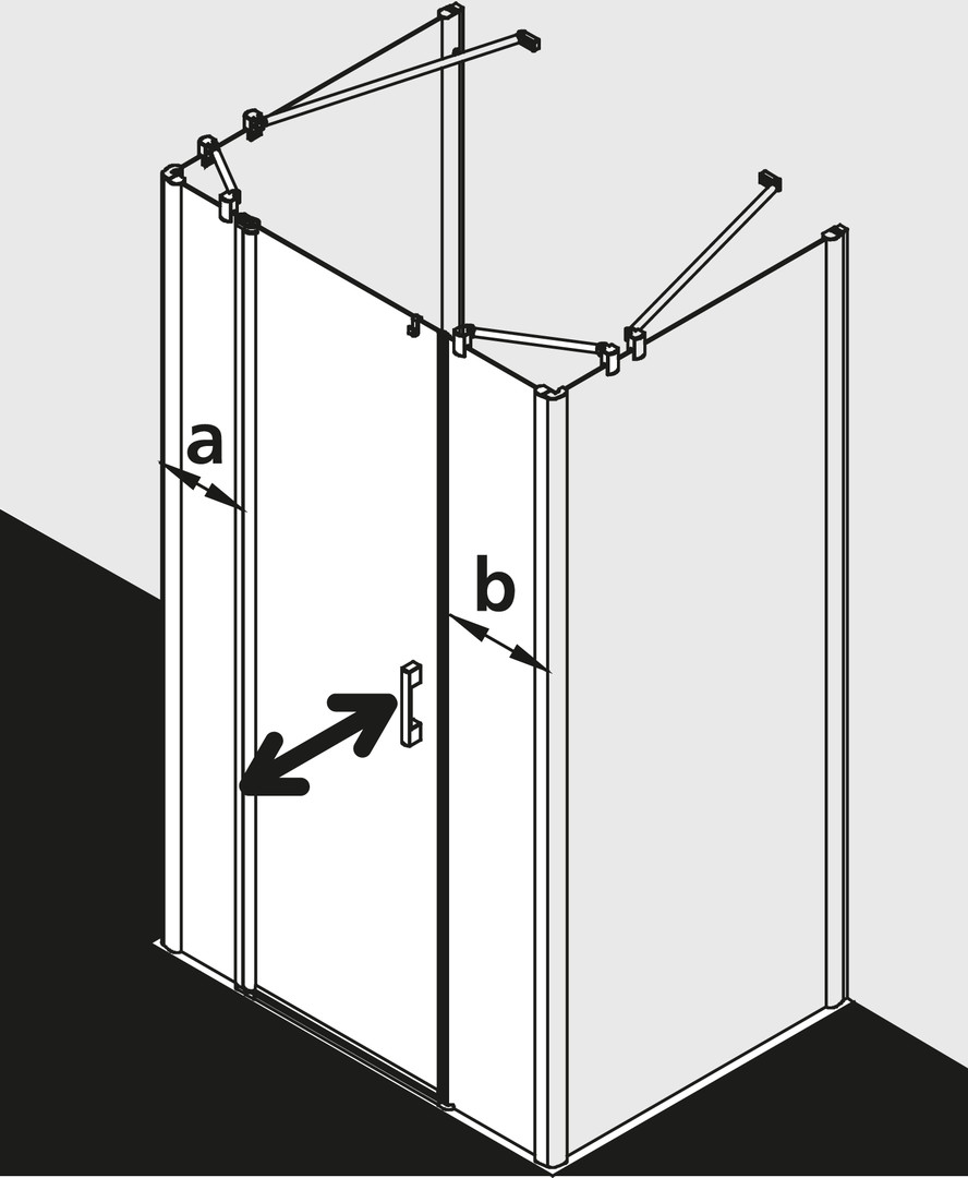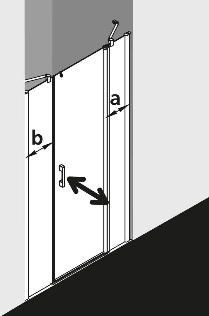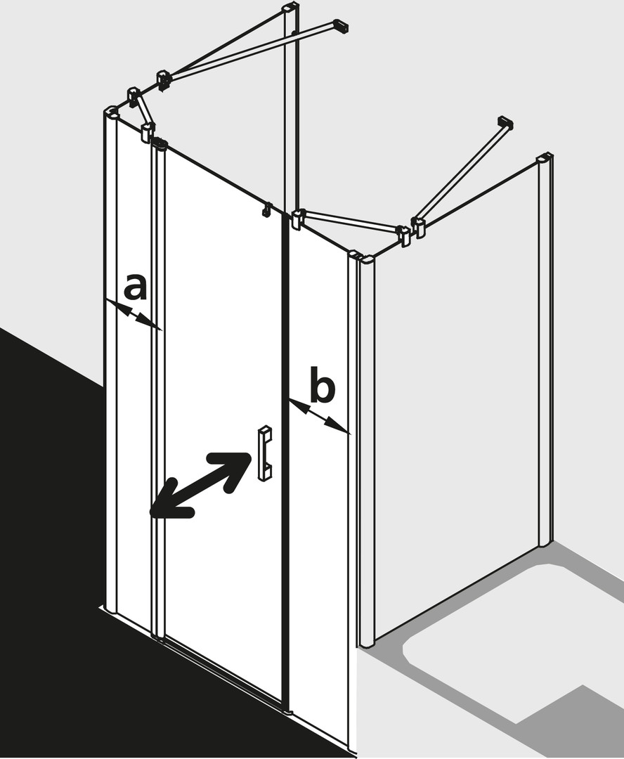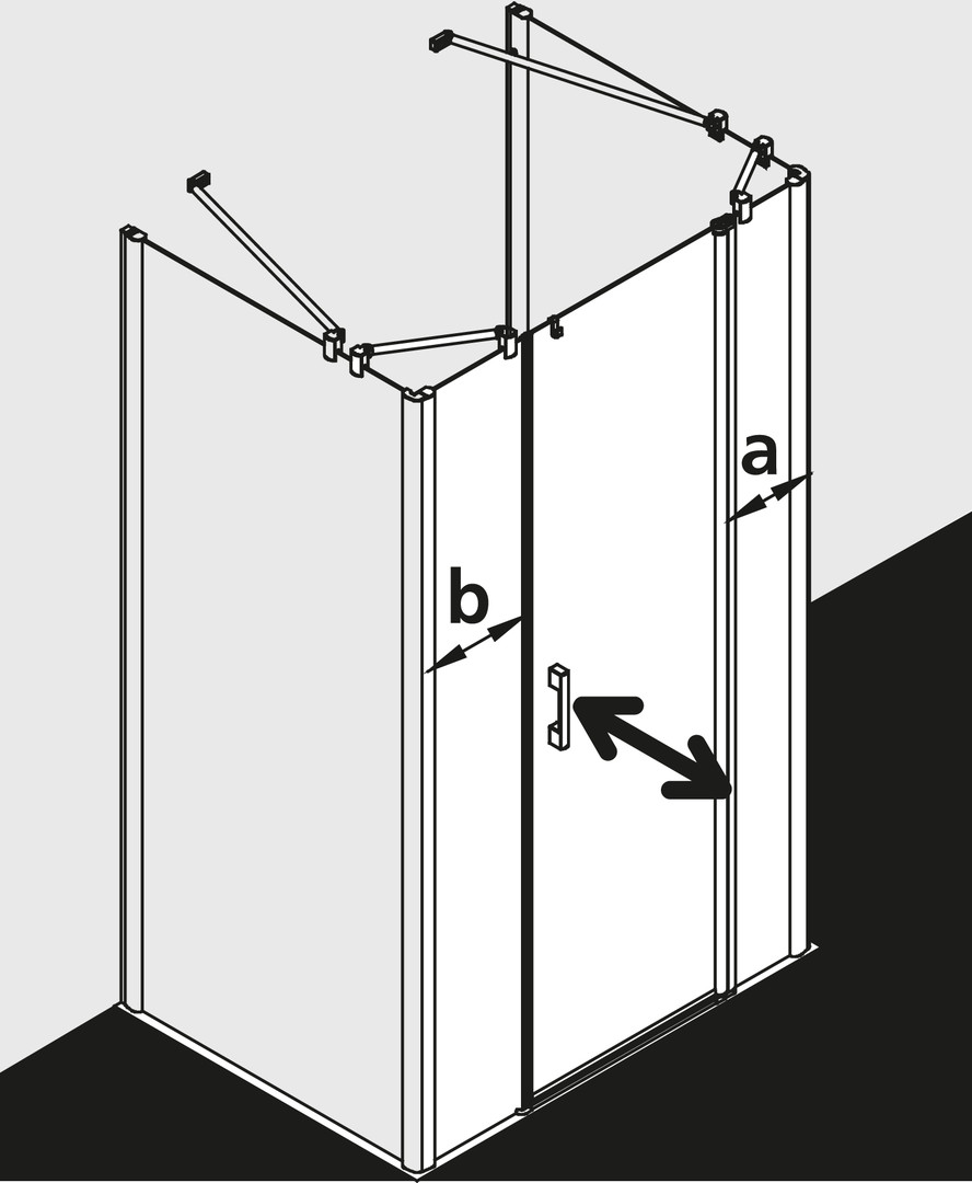 Kermi X-Like Pendeltür 1-flügelig mit Festfeld auf Duschwanne 103 x 200 cm, ESG klar Clean, silber hochglanz, links