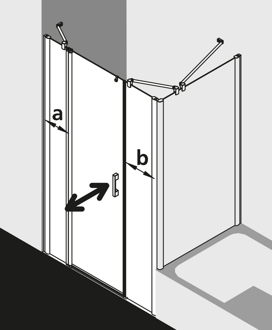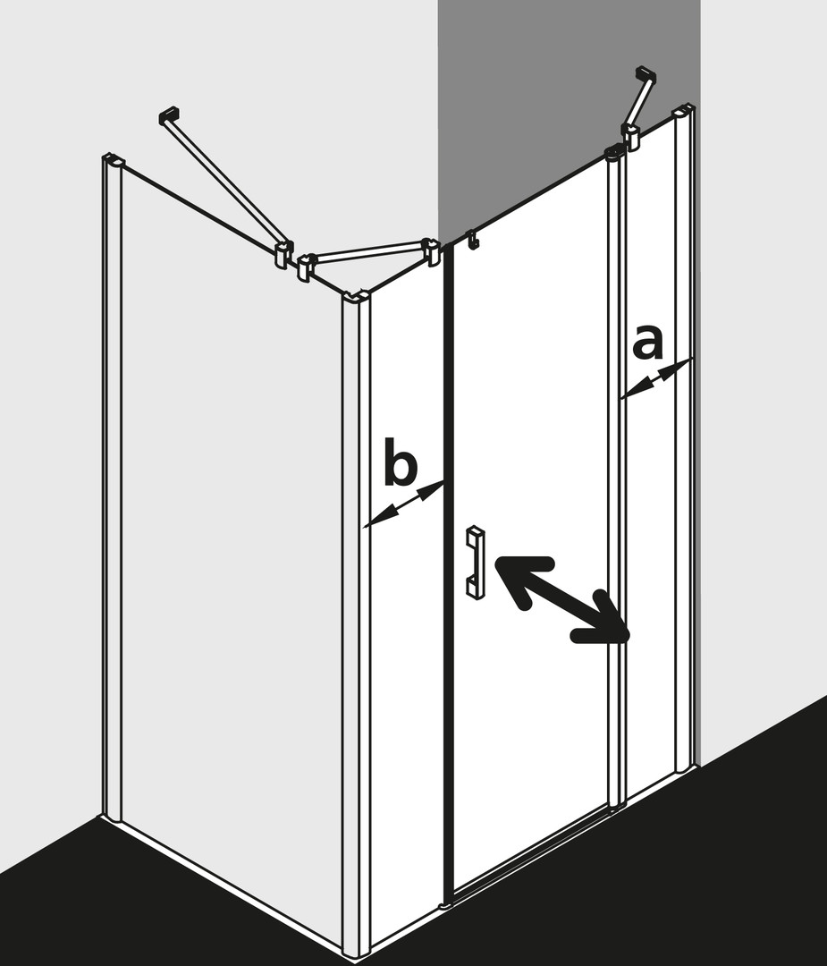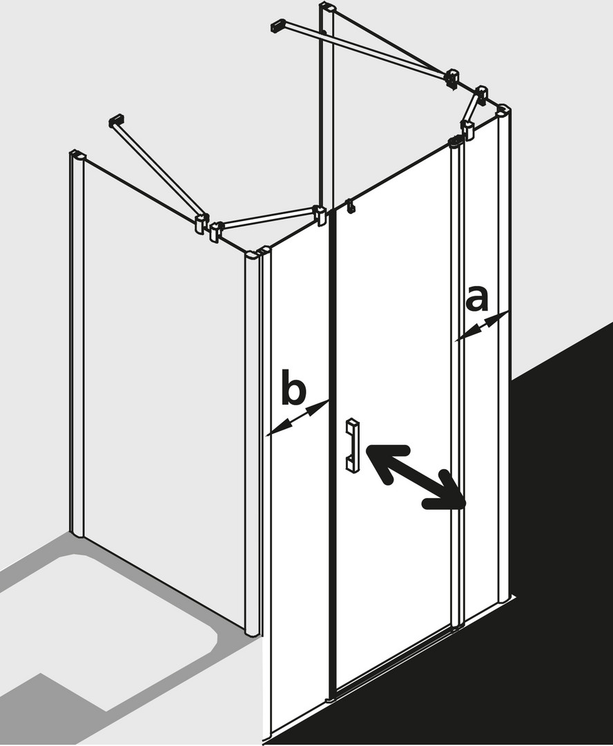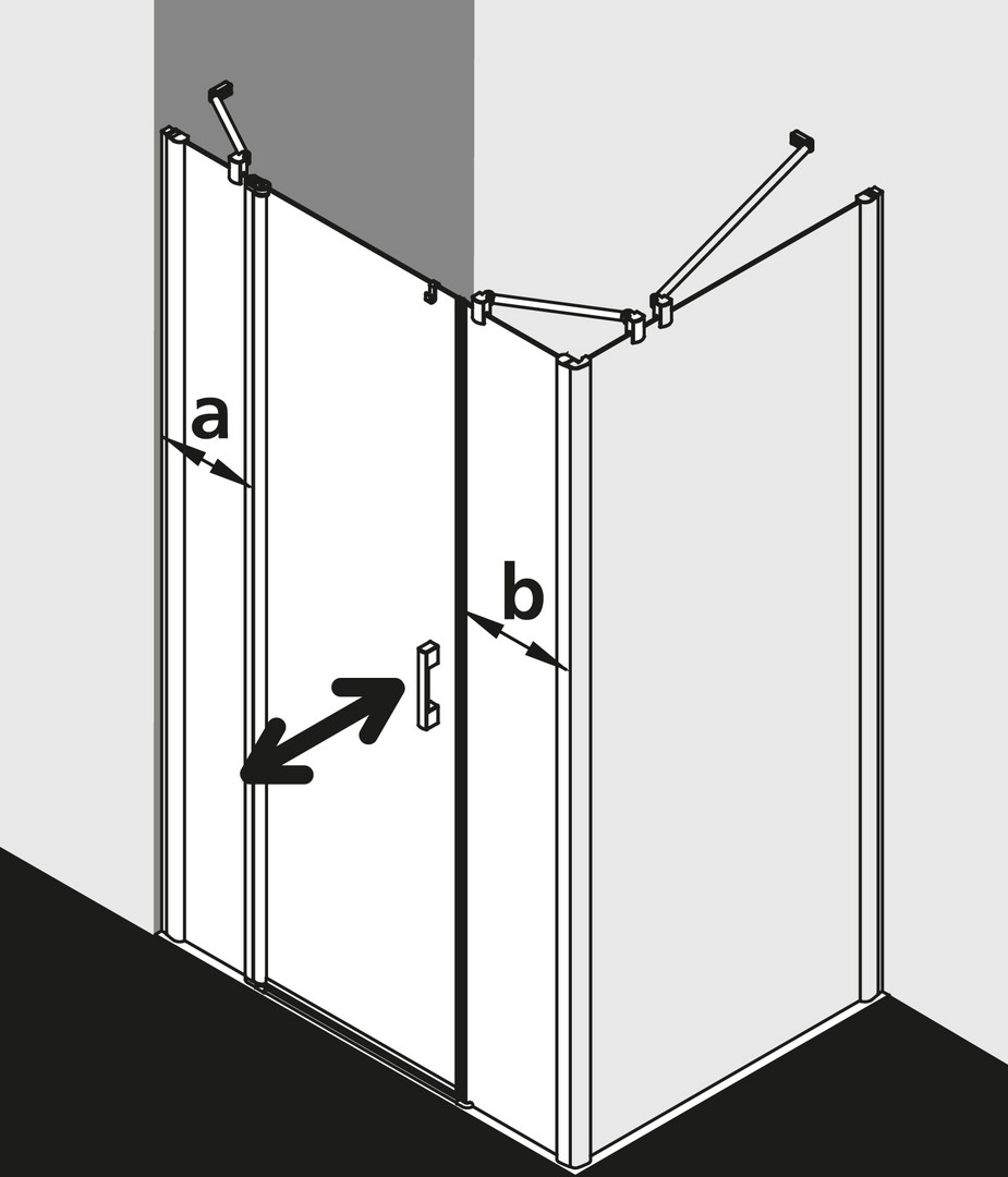 Kermi X-Like Pendeltür 1-flügelig mit Festfeld auf Duschwanne 103 x 200 cm, ESG klar Clean, silber hochglanz, links