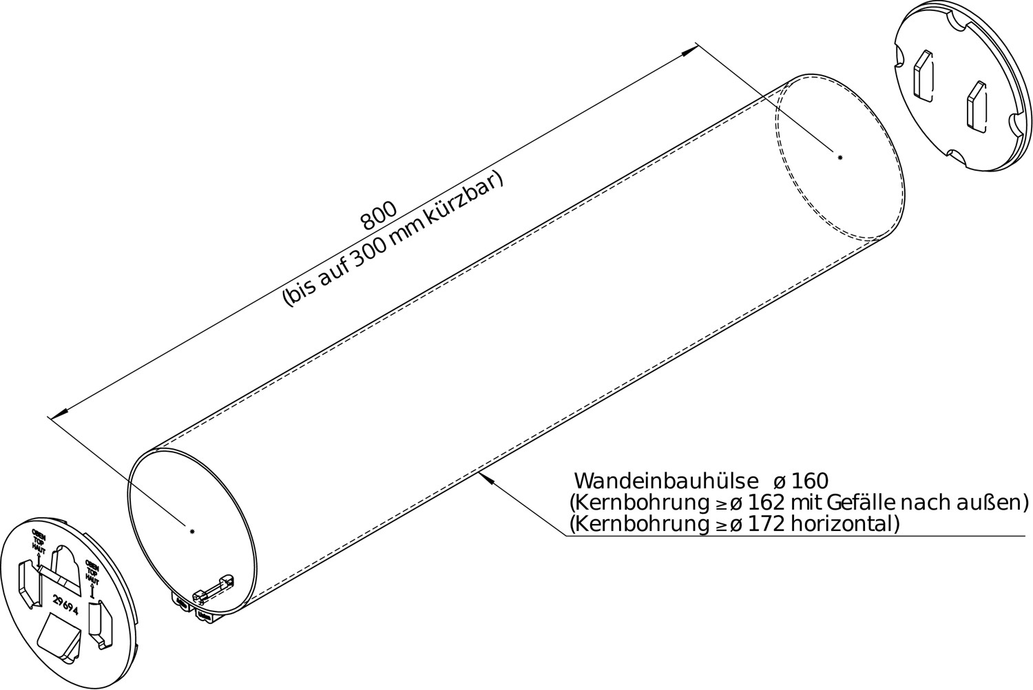 Helios Wandeinbauhülse KWL 45-160 WH-L, 800 mm, DN 160