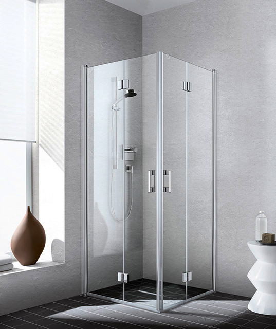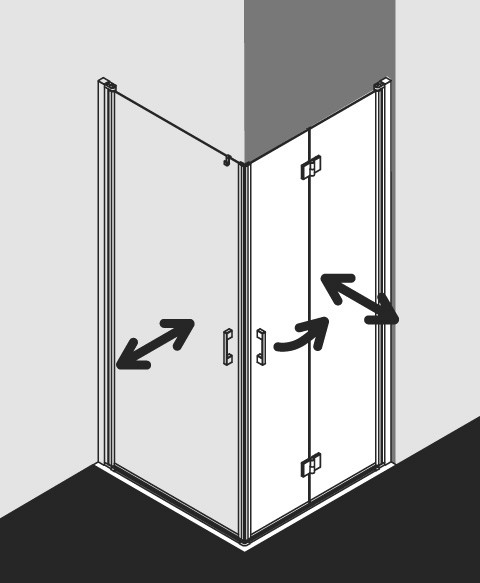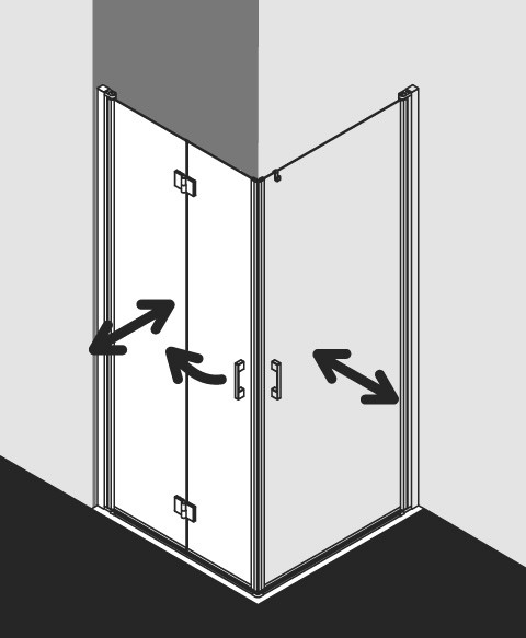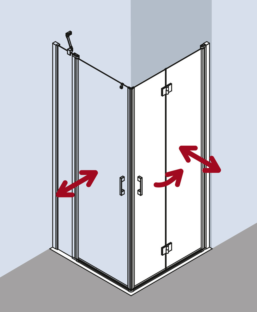 Kermi Wake Up Eckeinstiegshälfte Pendel-Falttür silber/hochglanz, 110 x 200 cm, links, ESG klar, auf Duschplatz