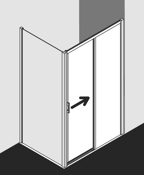 Kermi Wake Up Gleittür 2-tlg. bodenfrei mit Festfeld silber/hochglanz, 143 x 200 cm, ESG klar Clean, rechts W224926