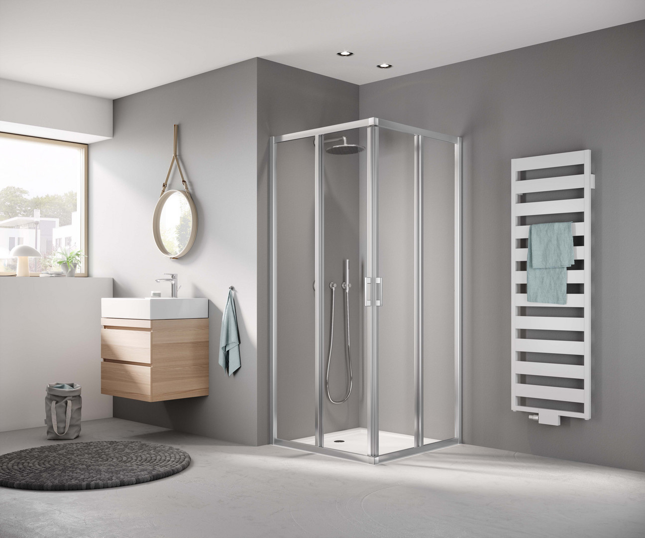 Kermi Wake Up Eckeinstiegshälfte Gleittür 2-tlg. silber/hochglanz, 90 x 200 cm, links, ESG klar W224981