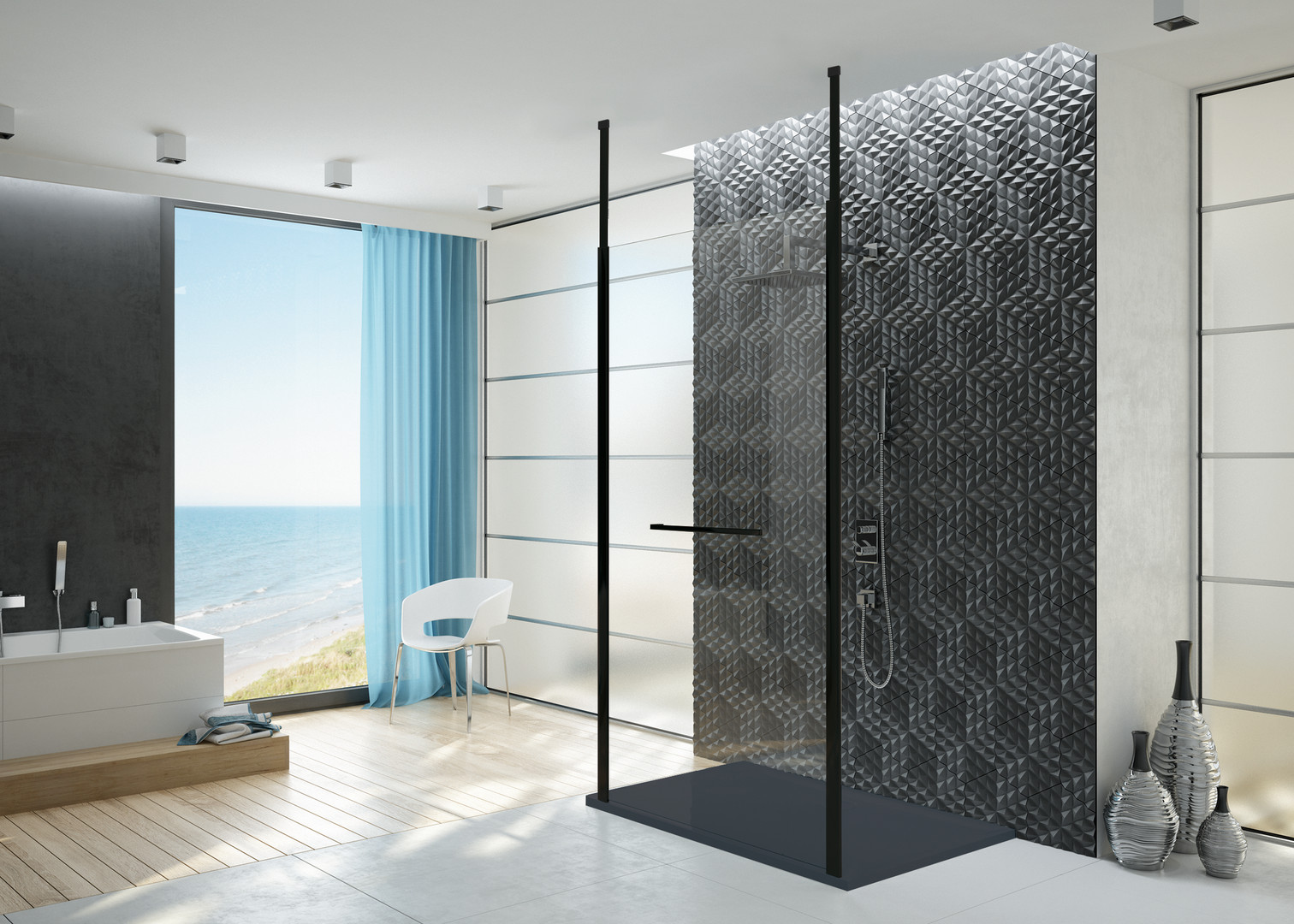 Glasstärke 8 mm, horizontale (Wand-) bzw. vertikale (Decken-) Befestigung möglich, Griff enthalten